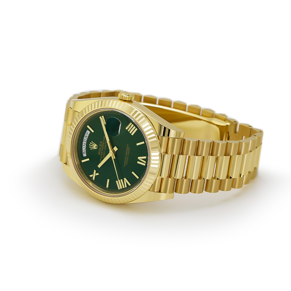 グリーンダイアル、フルーテッドベゼルとプレジデント(President)ブレスレットを備えたモデルです。