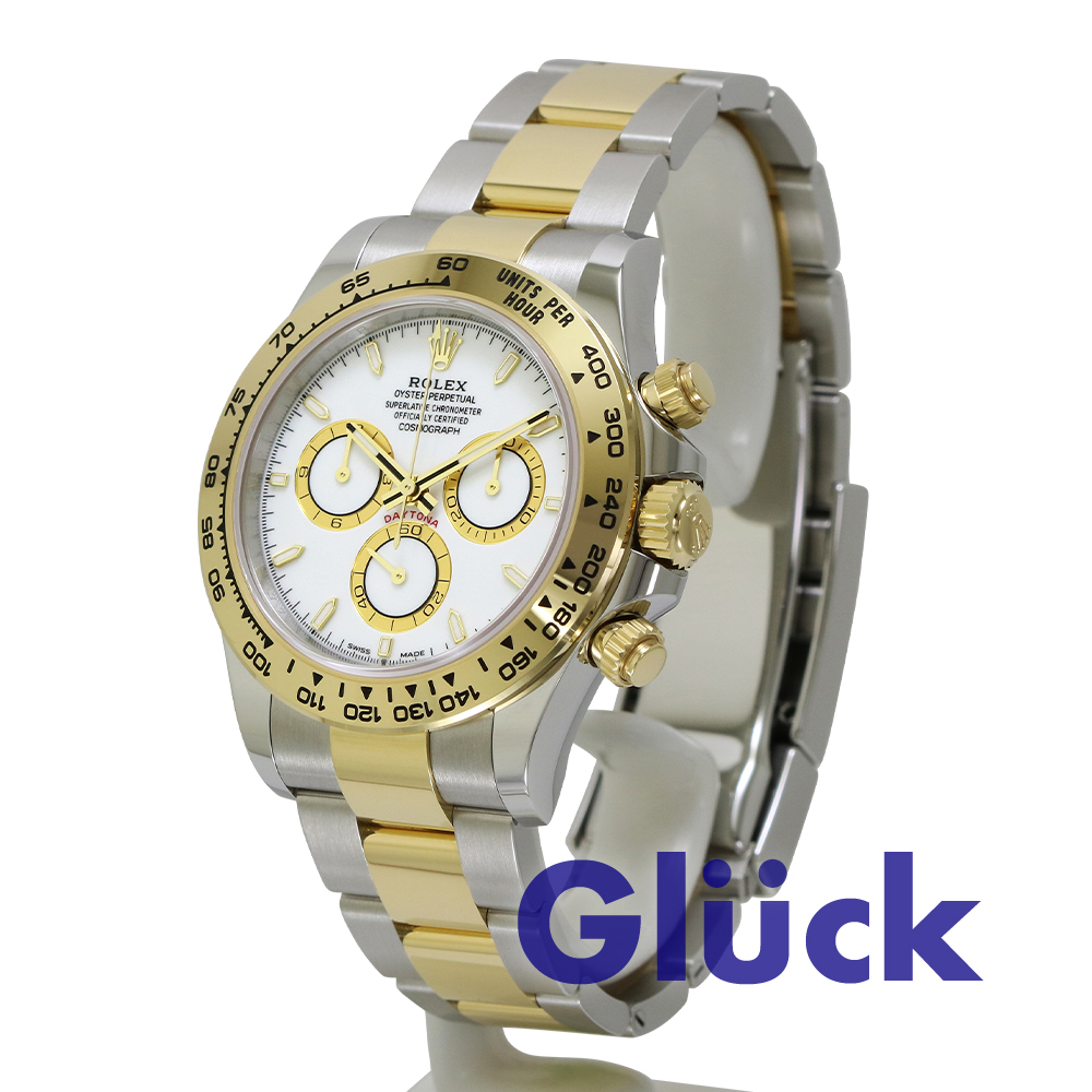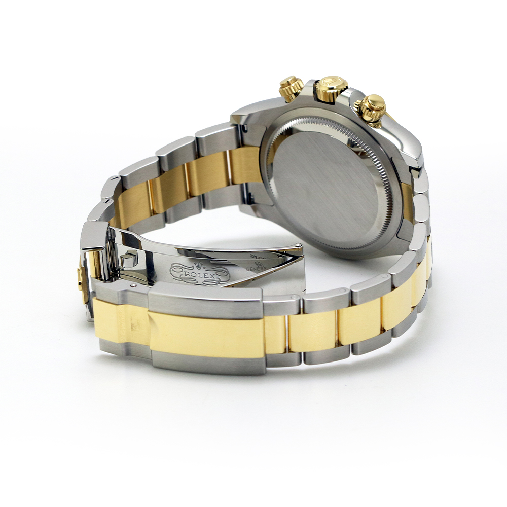 オイスターブレスレットとタキメーター目盛り入りイエローゴールドベゼルが特徴的です。