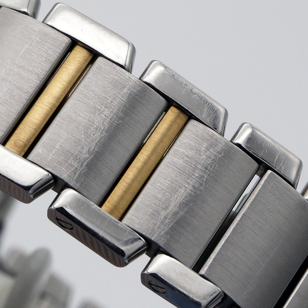 「タンク フランセーズ」は、メタルブレスレットの中央にケースを配置することで、「タンク」の従来のデザインを一変させたモデルです。