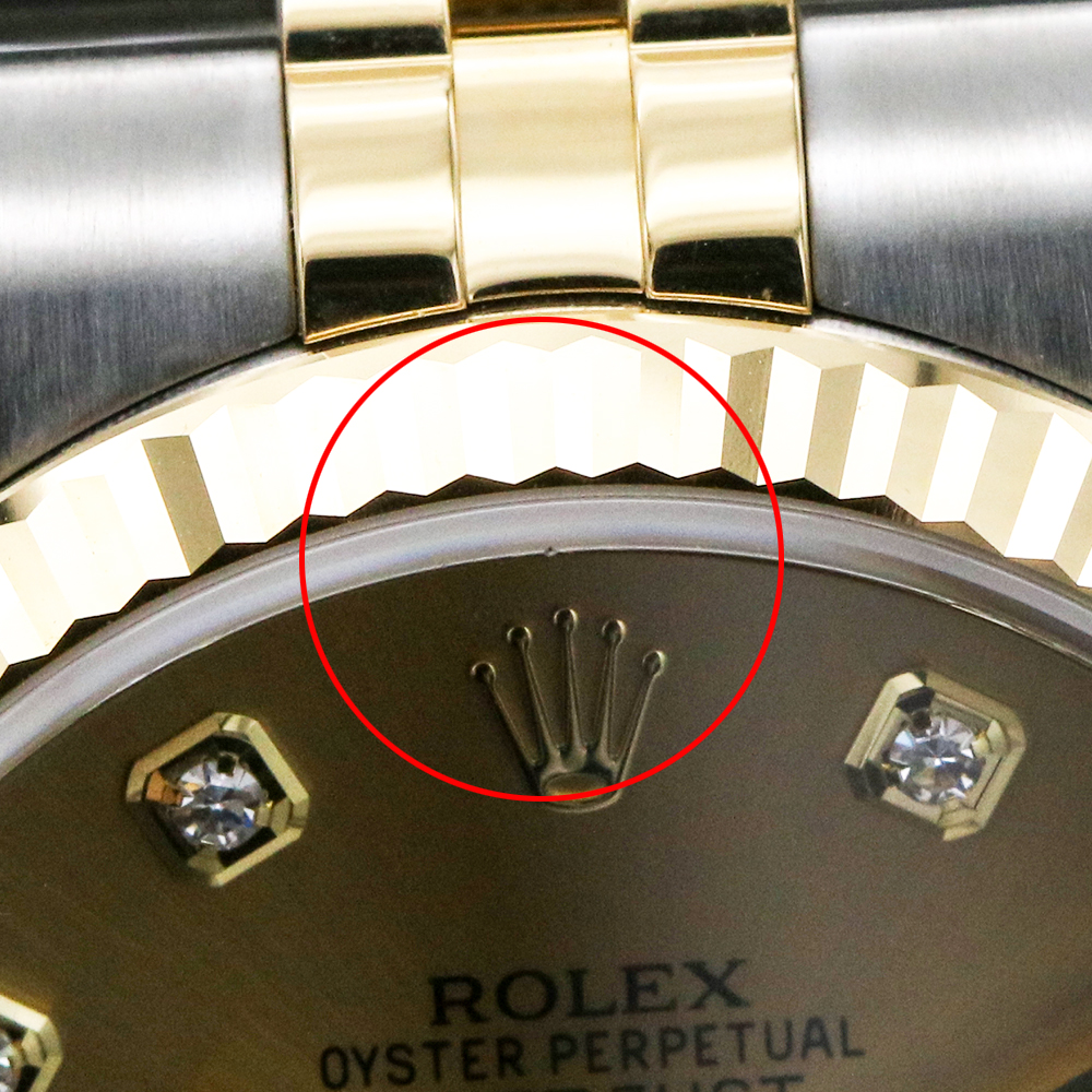 シャンパンカラーに10Pダイヤモンドインデックスのダイアルをあしらった定番のデイトジャストです。