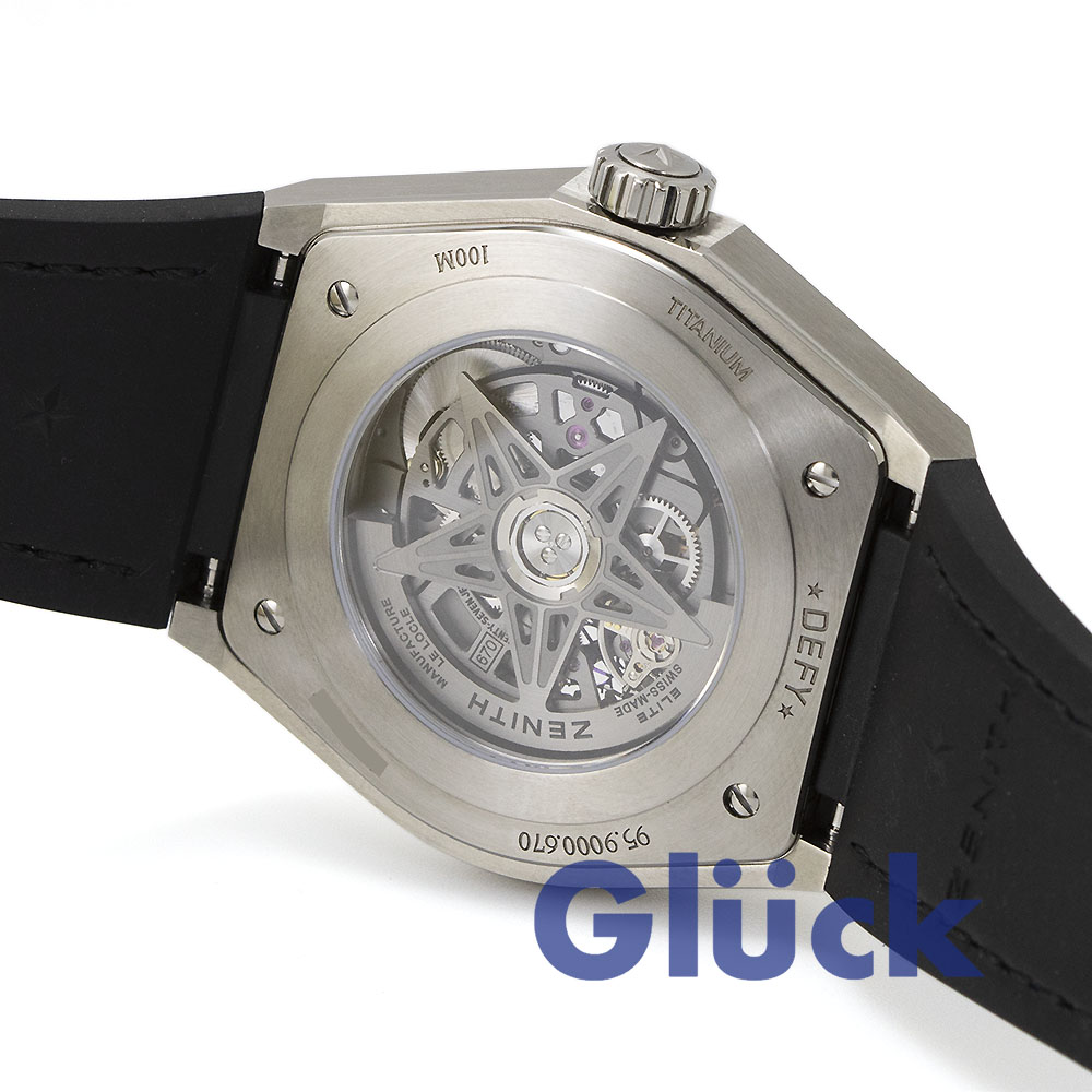 直径41mmブラッシュ仕上げチタン製ケースには、新たにゼニスのブランドロゴのスターを象ったローターを装備した、50時間パワーリザーブの自社製エリートムーブメント670SKを搭載しています。