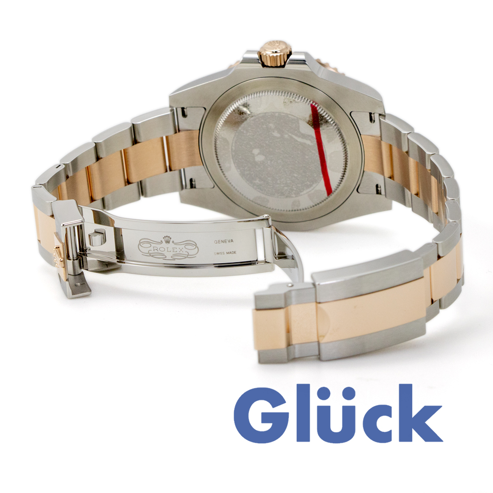 オイスタースチール&エバーローズゴールドのオイスター パーペチュアル GMTマスター Ⅱは、ブラックダイアルとオイスターブレスレットを備えたモデルです。
