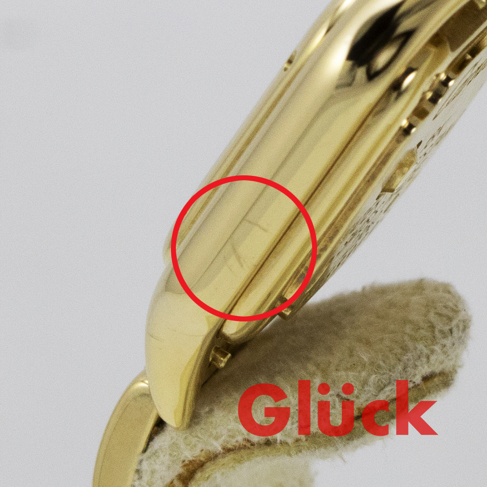 ベゼルに打痕、3時側ケース側面に擦りキズがあります。