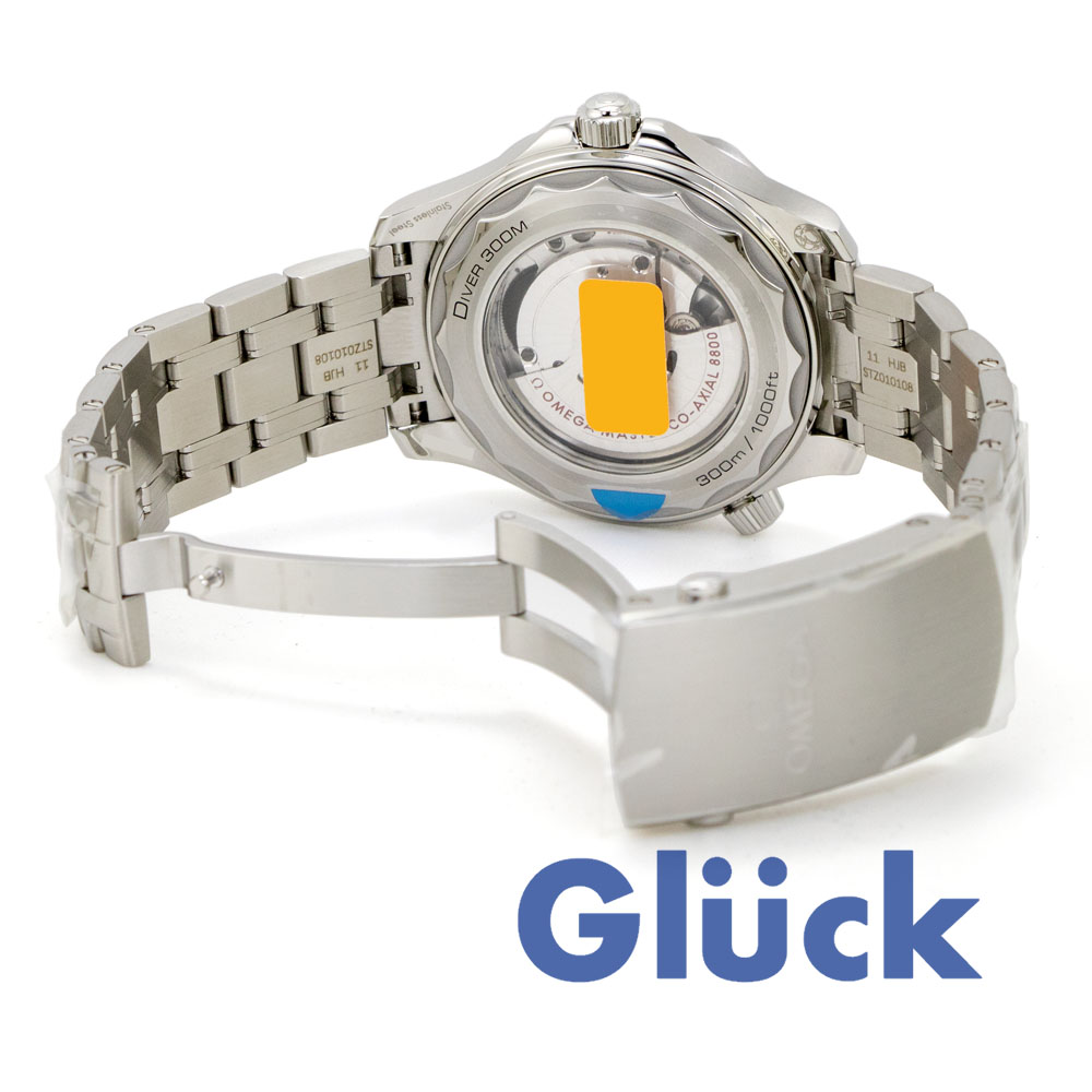 この42mmモデルは、ステンレススティール製で、ブラックセラミック製ベゼルにはホワイトエナメルのダイビングスケールが付属致します。