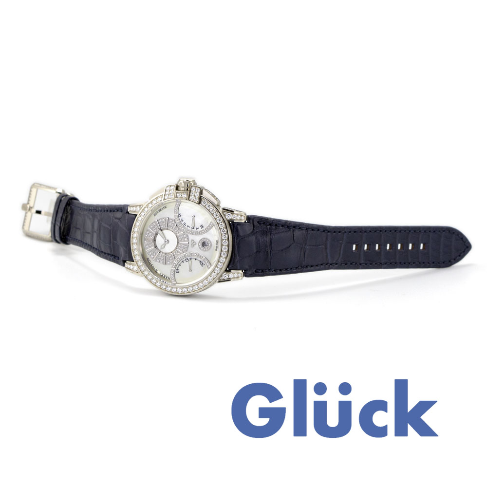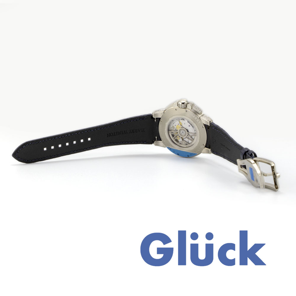 42mmのホワイトゴールドケースとホワイトマザーオブパールダイアルには、ハリーウィンストンならではの厳格な基準で選ばれた約4.37カラットのダイヤモンドがセッティングされています。
