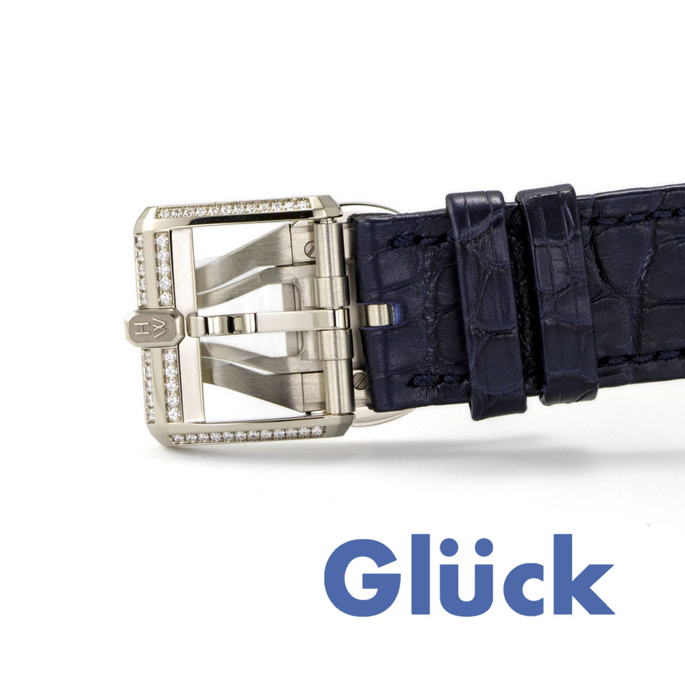 オフセンターの時・分表示のほかに、4時位置にレトログラード式曜日表示、8時位置にレトログラード式秒針を備えた自社開発ムーブメントの「HW3305」を搭載します。