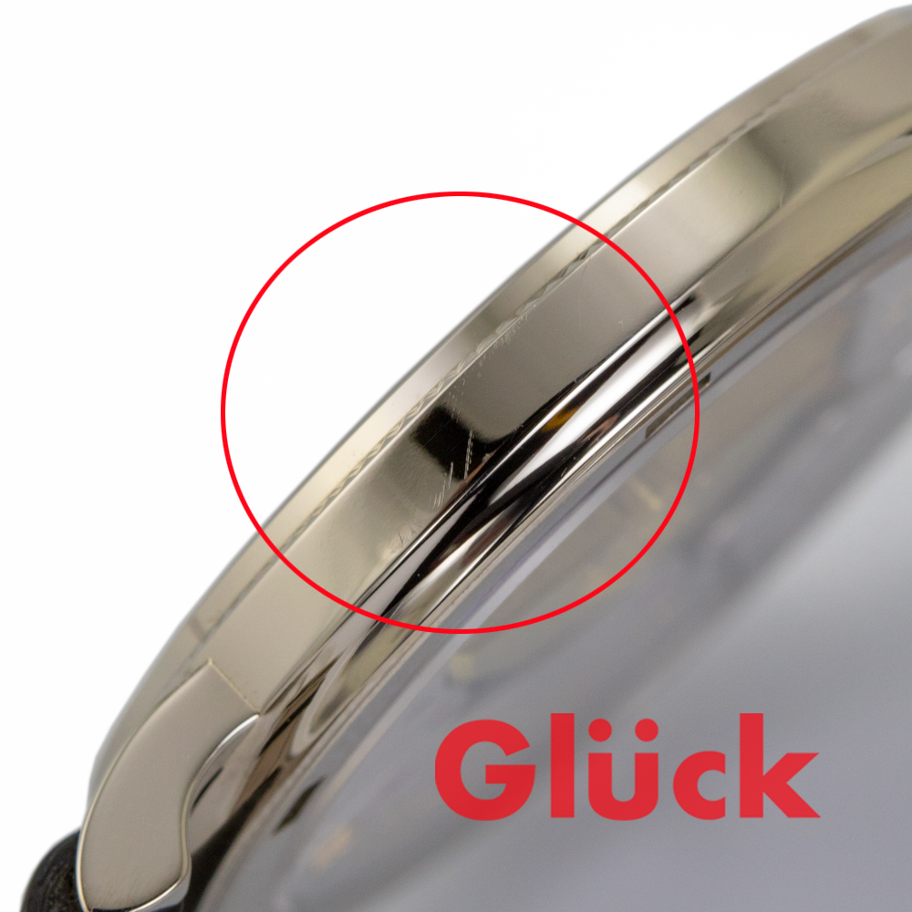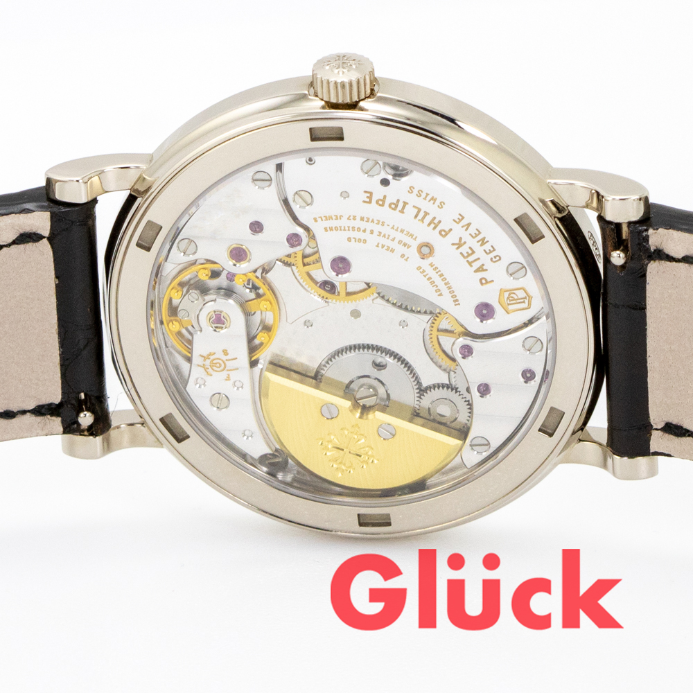 薄型ケースですので手巻きかと思いきや自動巻きを搭載しており、シースルーバックからは「Cal.240」の22金マイクロローターの動きをお楽しみいただけます。