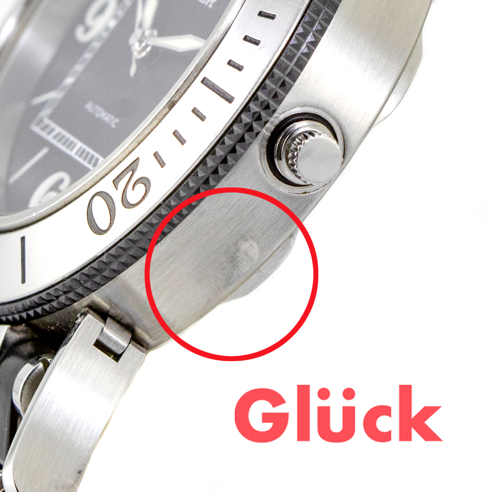 全体的に使用感があり、ベゼルに打痕があります。精度等動作に問題はありません。