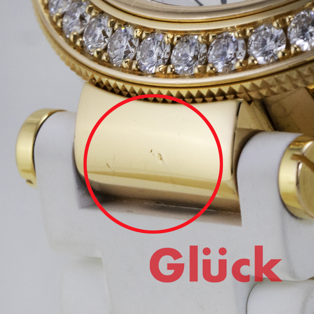 マザーオブパール文字盤に、ボリュームのあるダイヤモンドセッティングベゼルの華やかなモデルです。