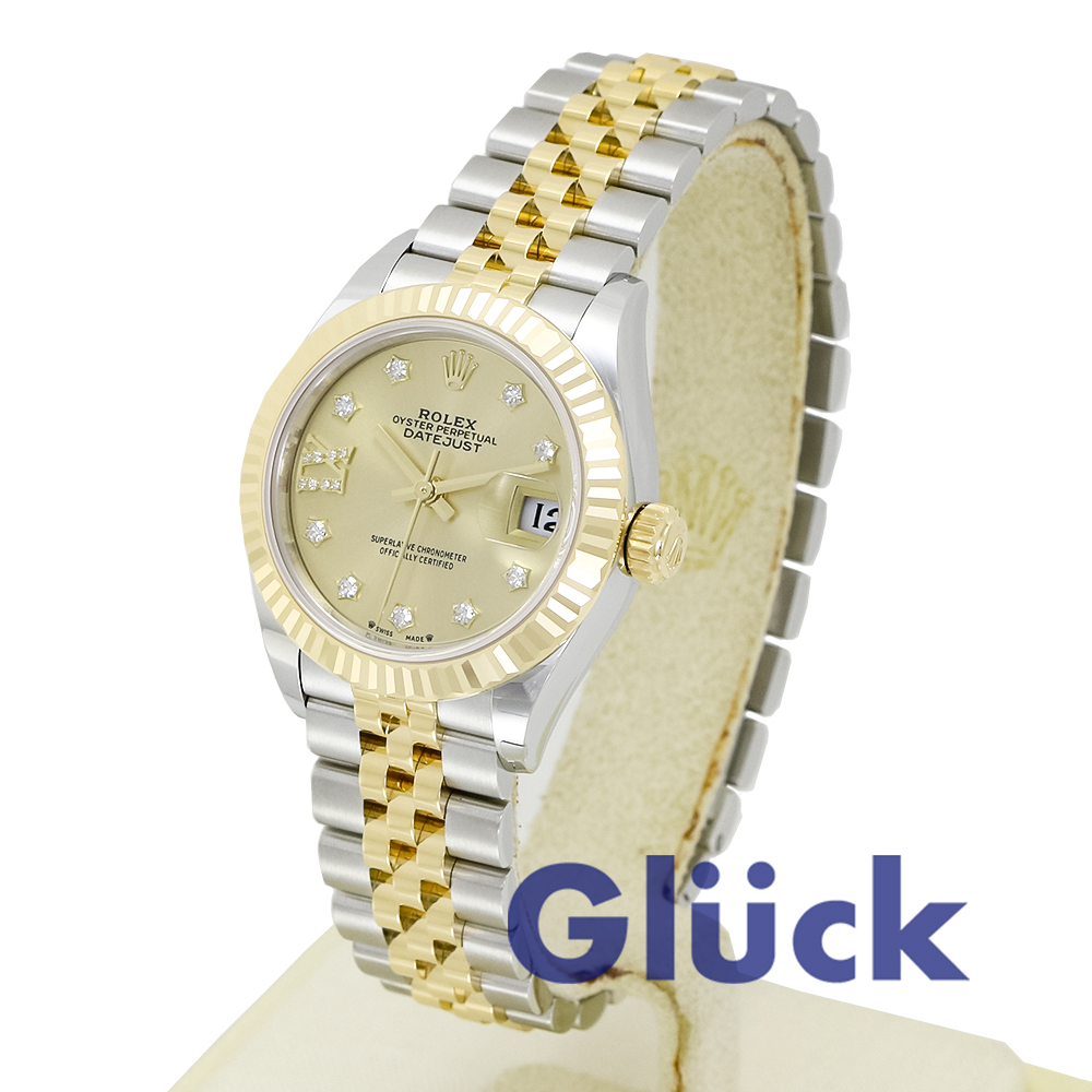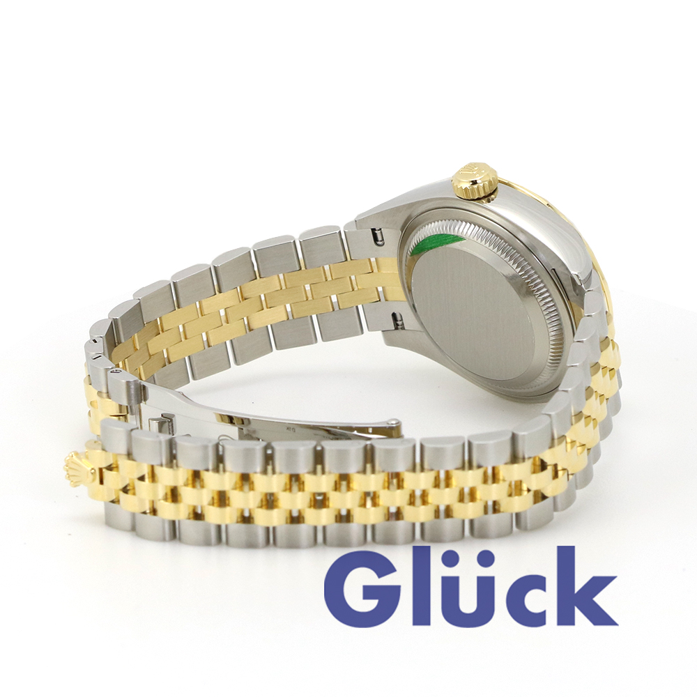 こちらはシャンパンカラー、ダイヤモンド入りダイアルとジュビリー(Jubilee)ブレスレットを備えたモデルです。