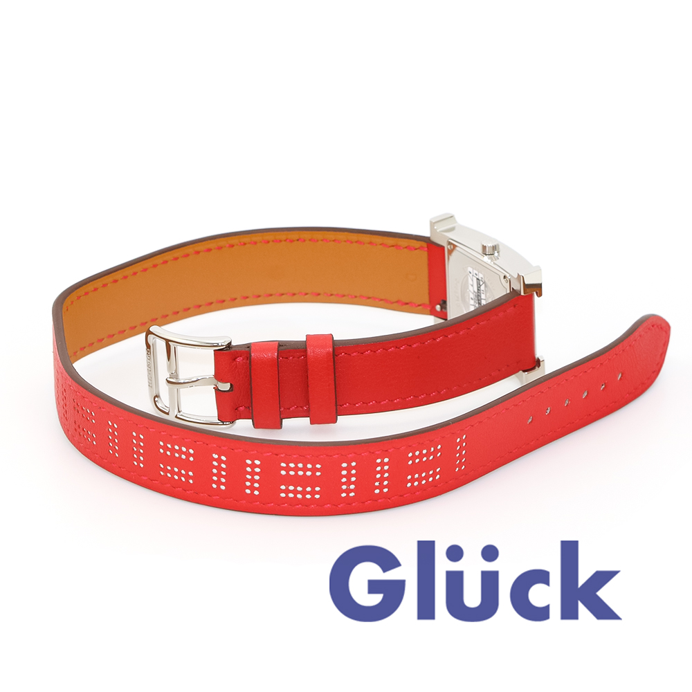 ロングサイズのドゥブルトゥールストラップには、アイコンの「H」をモチーフにパンチングされたデザインになっています。