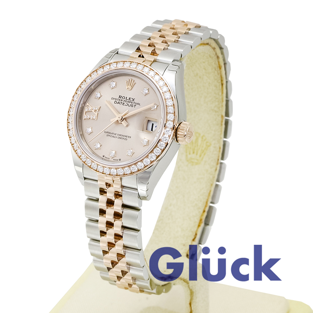 エバーローズロレゾールのオイスターパーペチュアルレディデイトジャスト 279381RBR、サンダスト・ダイヤモンド入りダイアルとジュビリー(Jubilee)ブレスレットモデルが入荷いたしました。