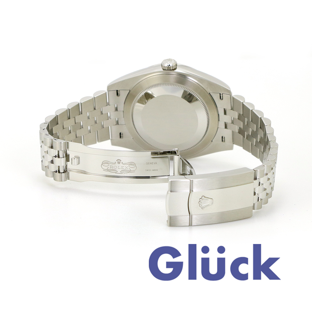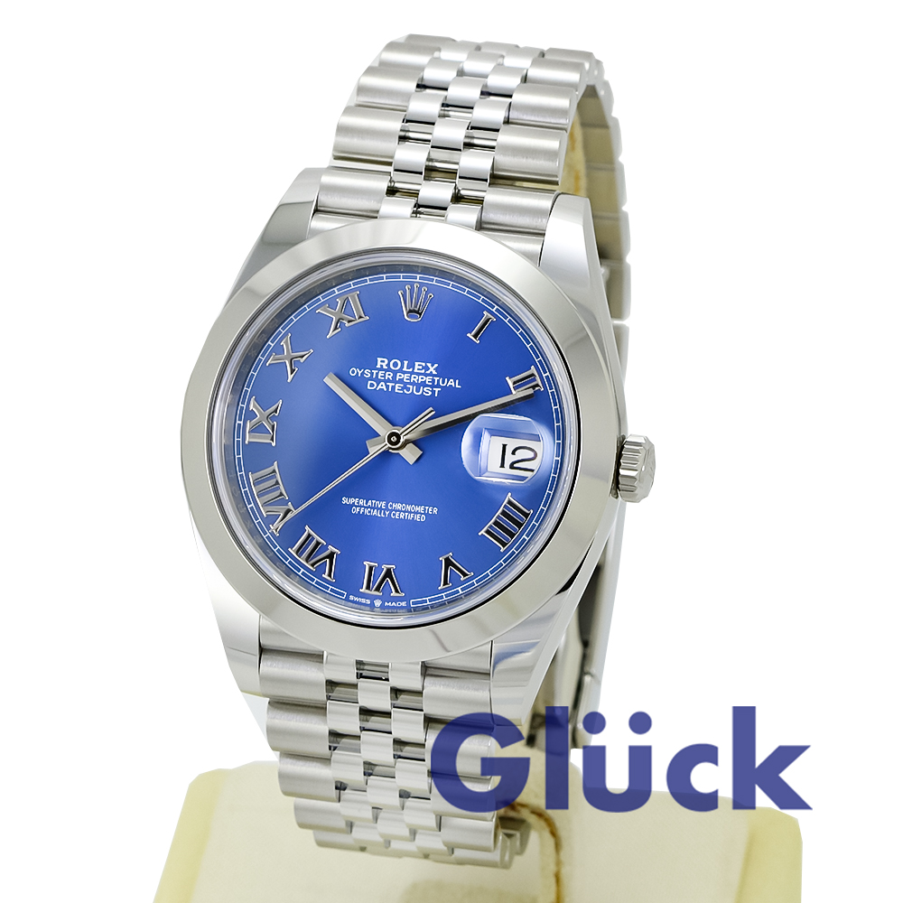 オイスタースチールのオイスターパーペチュアルデイトジャスト41 126300、ブルーローマダイアルとジュビリーブレスレットモデルが入荷いたしました。