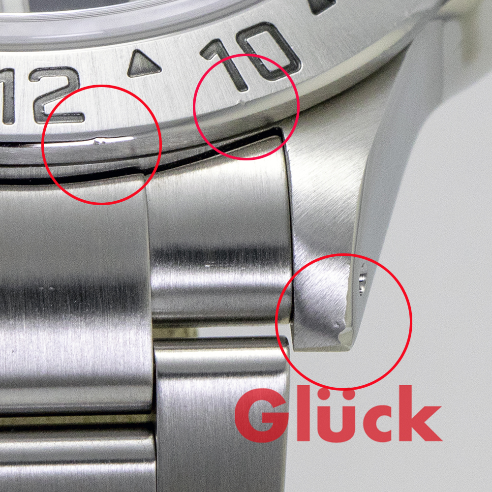 ベゼルに擦りキズや打痕、5時位置のラグに打痕があります。