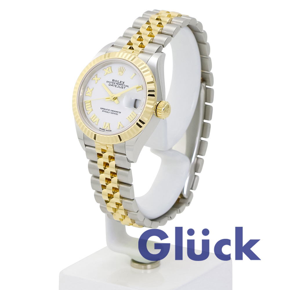 ホワイトダイアルとジュビリー(Jubilee)ブレスレットを備えた、イエローロレゾールのオイスター パーペチュアル レディ デイトジャスト 279173 が、入荷いたしました。