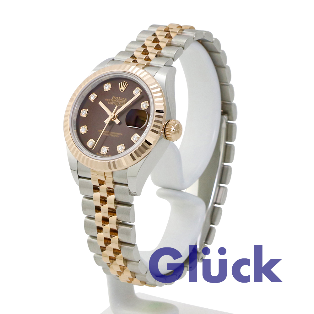 エバーローズロレゾールのオイスターパーペチュアルレディデイトジャスト 279171G、チョコレート・10ポイントダイヤモンド入りダイアルとジュビリー(Jubilee)ブレスレットモデルが入荷いたしました。