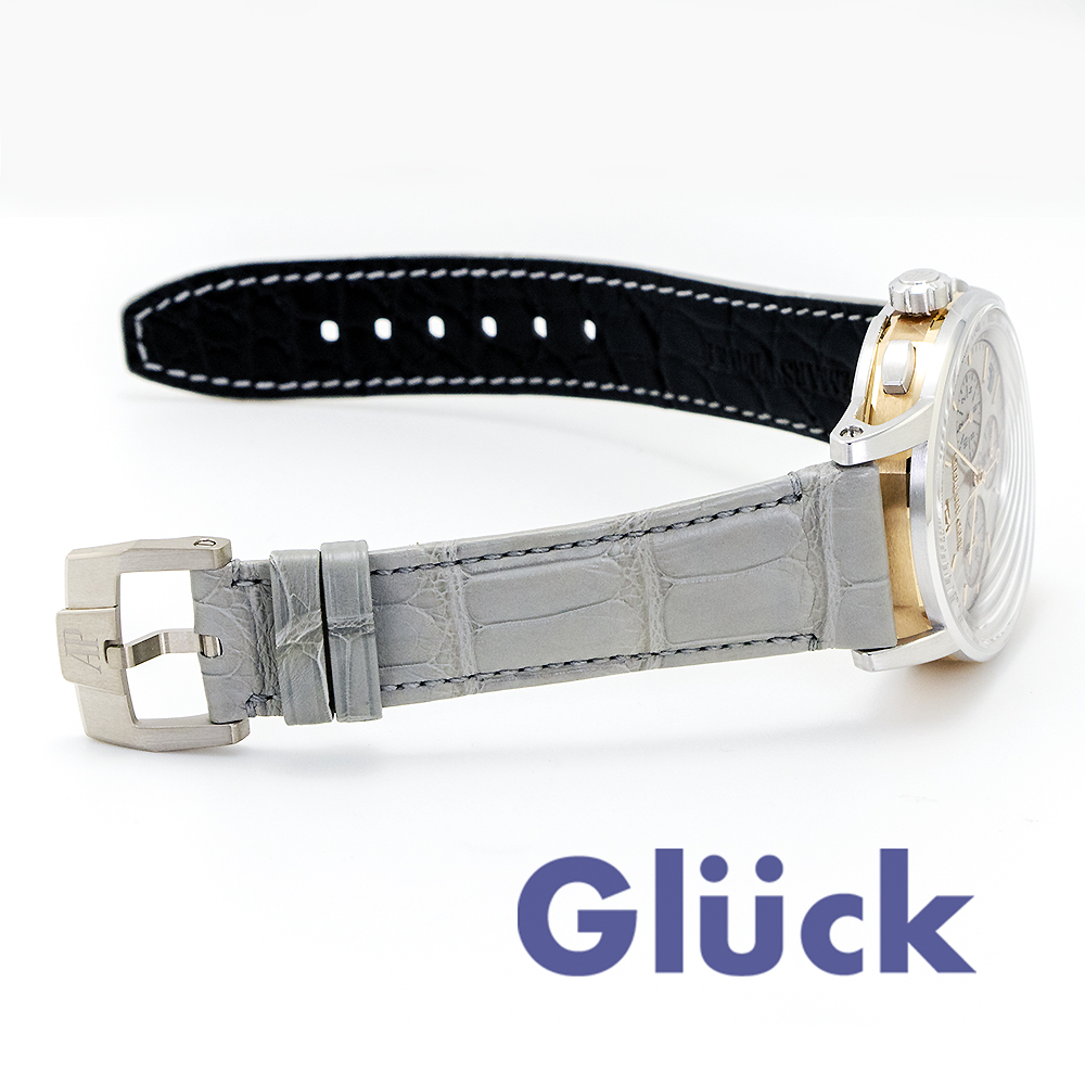 18Kホワイトゴールドとピンクゴールドのツートンケースに、サンバーストのグレーラッカーダイヤルモデルです。