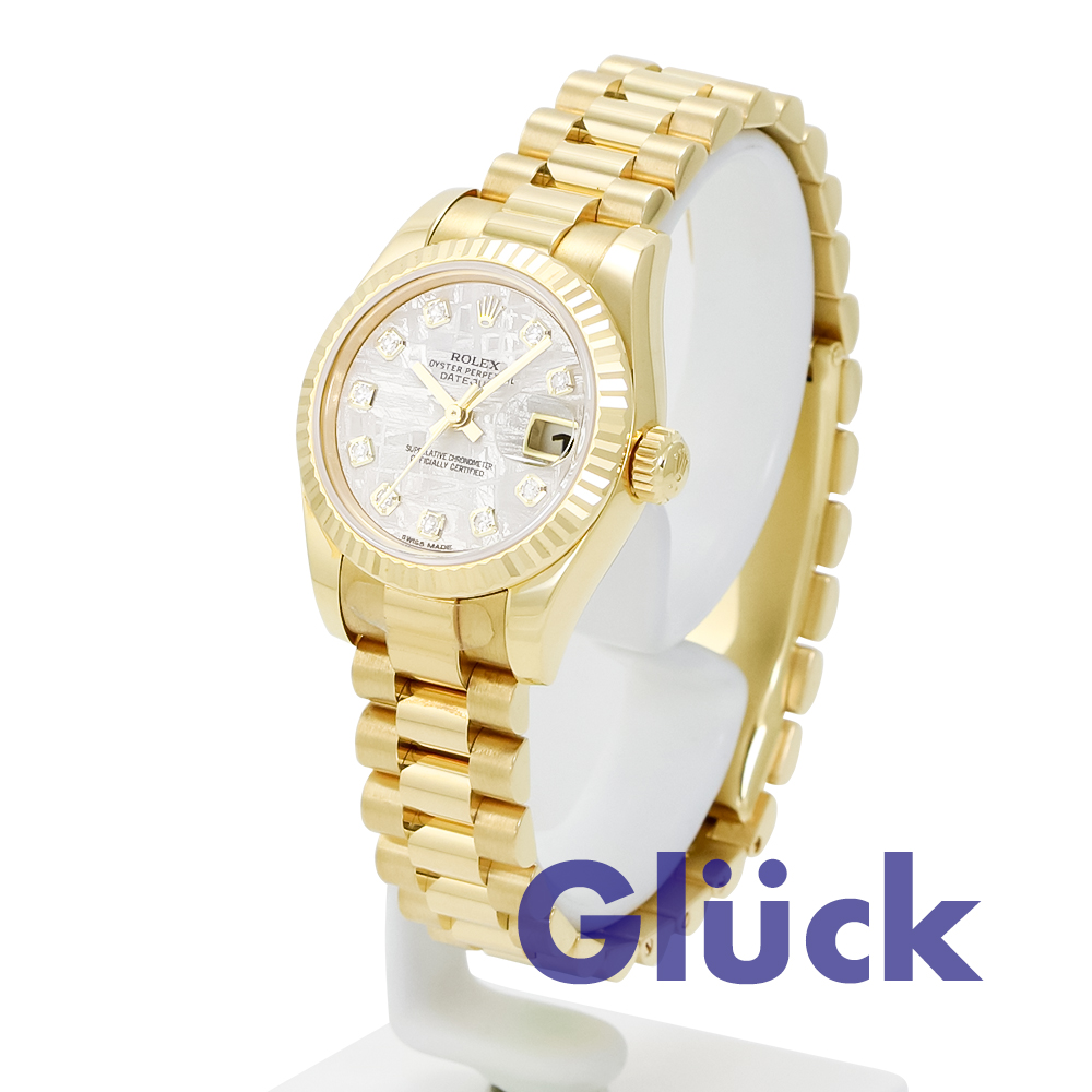 文字盤に10Pのダイヤモンドとイエローゴールドの素材を全体に使用したデイトジャストです。