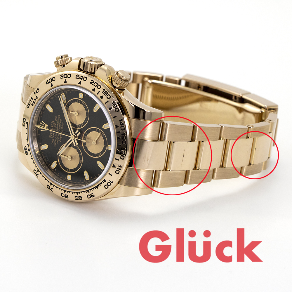 ベゼルに打痕、ブレスやバックルにやや使用感がありますが、おおむねきれいな状態です。
