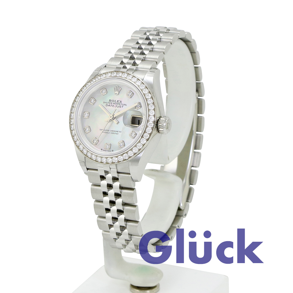 ホワイトマザーオブパール・ダイヤモンド入りダイアルとジュビリー(Jubilee)ブレスレットを備えた、ホワイトロレゾールのオイスターパーペチュアル レディ デイトジャスト 28 279384RBR が、入荷いたしました。