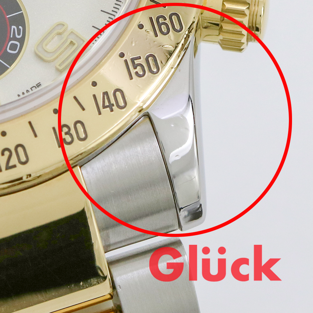 タキメーターベゼルの塗料が薄い部分があり、ベゼルとケース、バックルに打痕等の磨き後がございます。