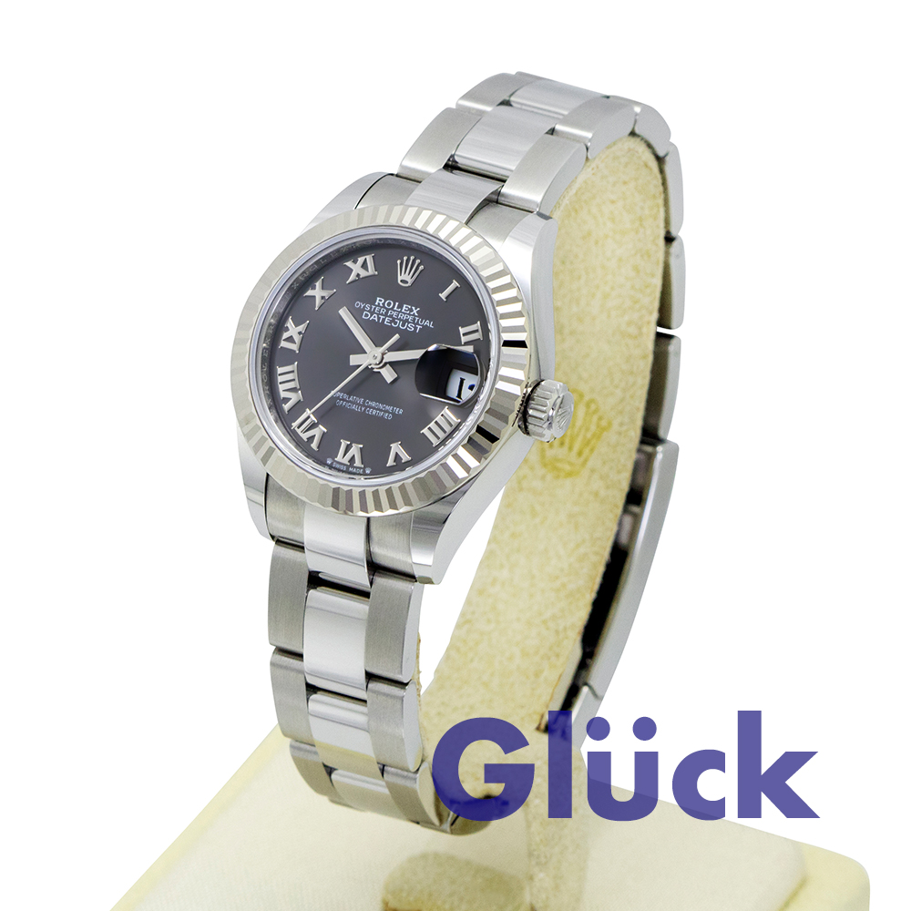 ダークグレーダイアルとオイスターブレスレットを備えた、オイスタースチール&ホワイトゴールドのオイスター パーペチュアル レディ デイトジャスト 279174、入荷いたしました。