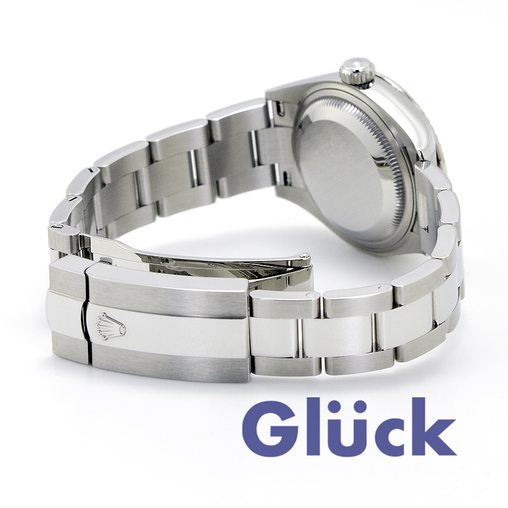 ケースサイドとラグに光が反射し、フルーテッド ベゼルを搭載した28mmのオイスターケースのエレガントな輪郭を際立たせています。