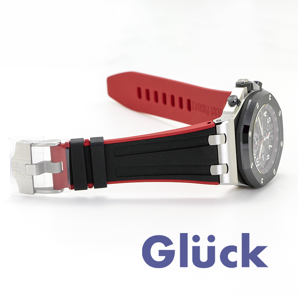 このモデルでは、ロイヤル オーク オフショアコレクションに欠かせない素材であるステンレススティール、セラミックおよびラバーの組み合わせを採用しています。