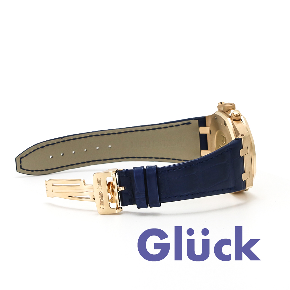 ブルーカラーのハンドステッチのアリゲーターストラップと、「グランド・タペストリー」模様のダイヤルを備えた18Kピンクゴールドの特別モデルです。