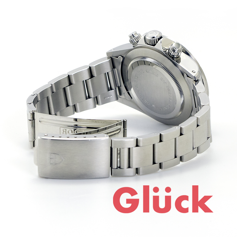 リューズと裏蓋にはロレックスの王冠マーク、文字盤には“OYSTERDATE”の表記があります。