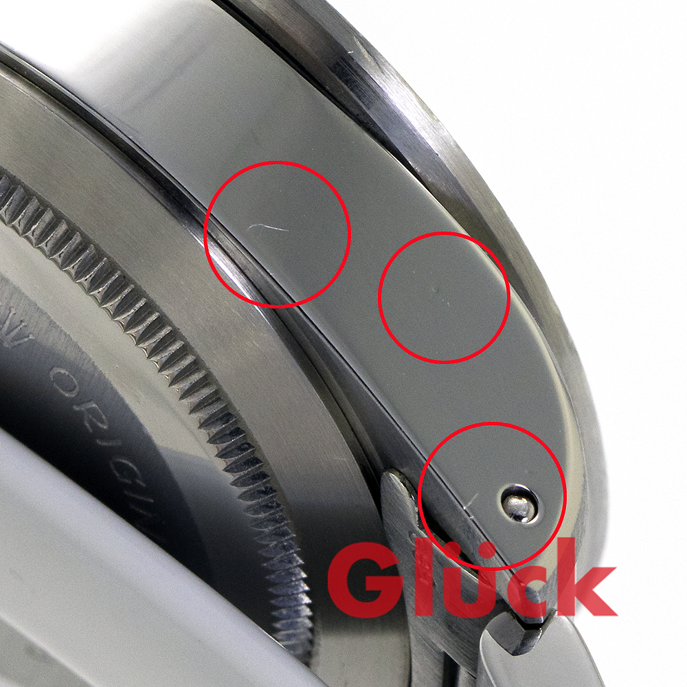 風防にキズや欠けがあり、ベゼルに打痕があります。
