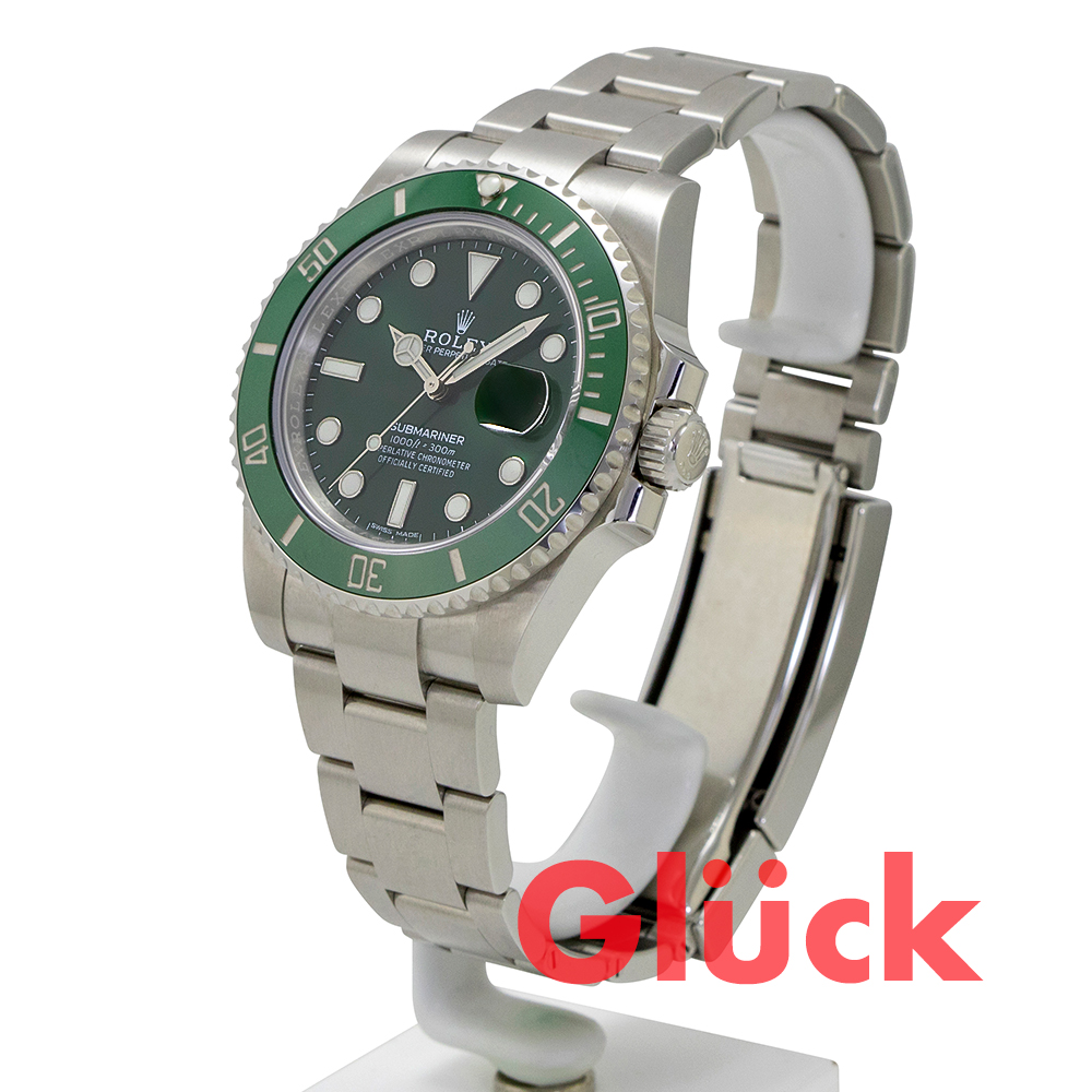 長期間にわたり鮮やかな色彩を保持する耐蝕性と、耐傷性に優れたセラミックベゼルを搭載した、グリーンサブマリーナーです。