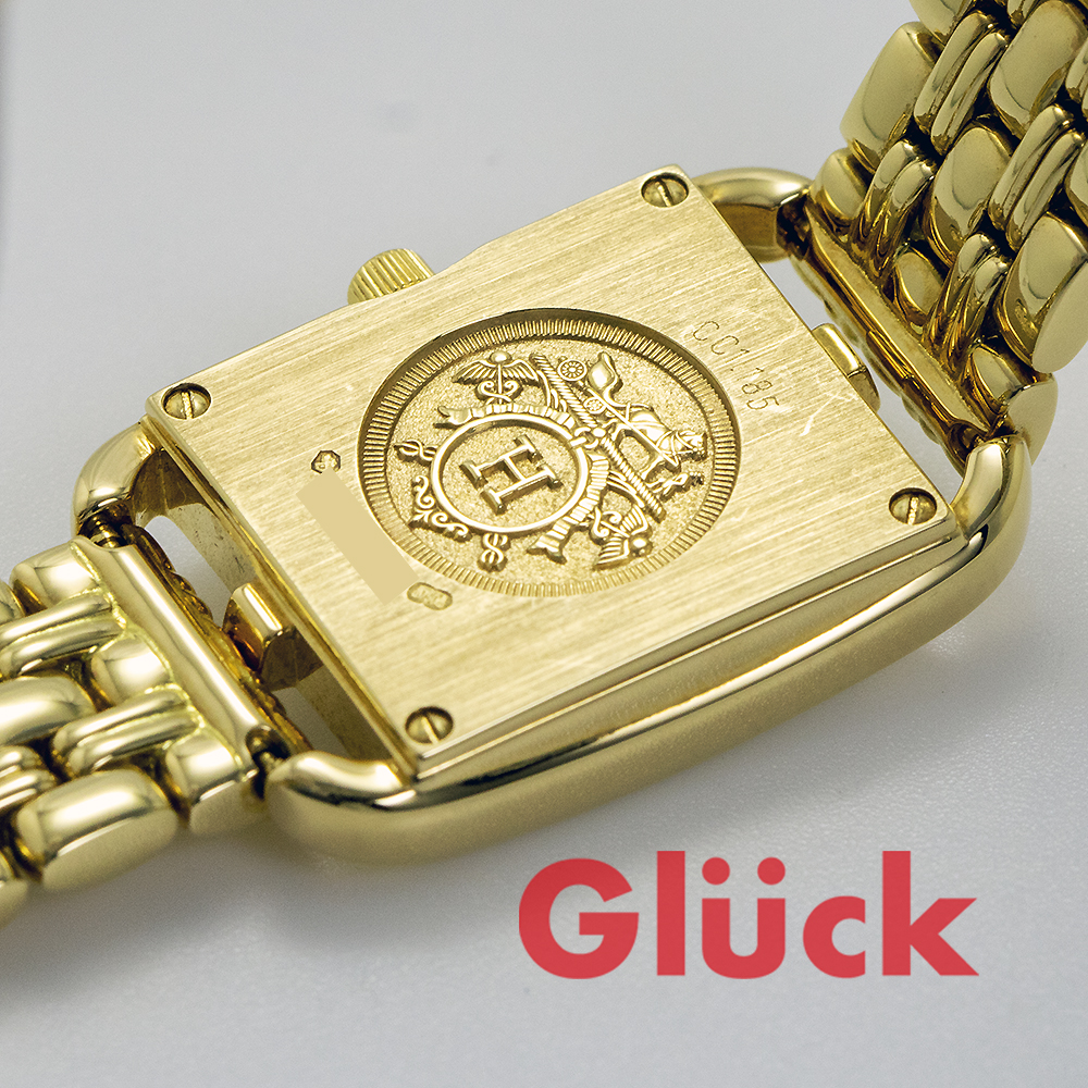 長方形に正方形を重ねたケース、そしてエルメスがジュエリーに仕立てた錨の鎖《シェーヌ・ダンクル》に着想を得たインデックスがデザインされています。