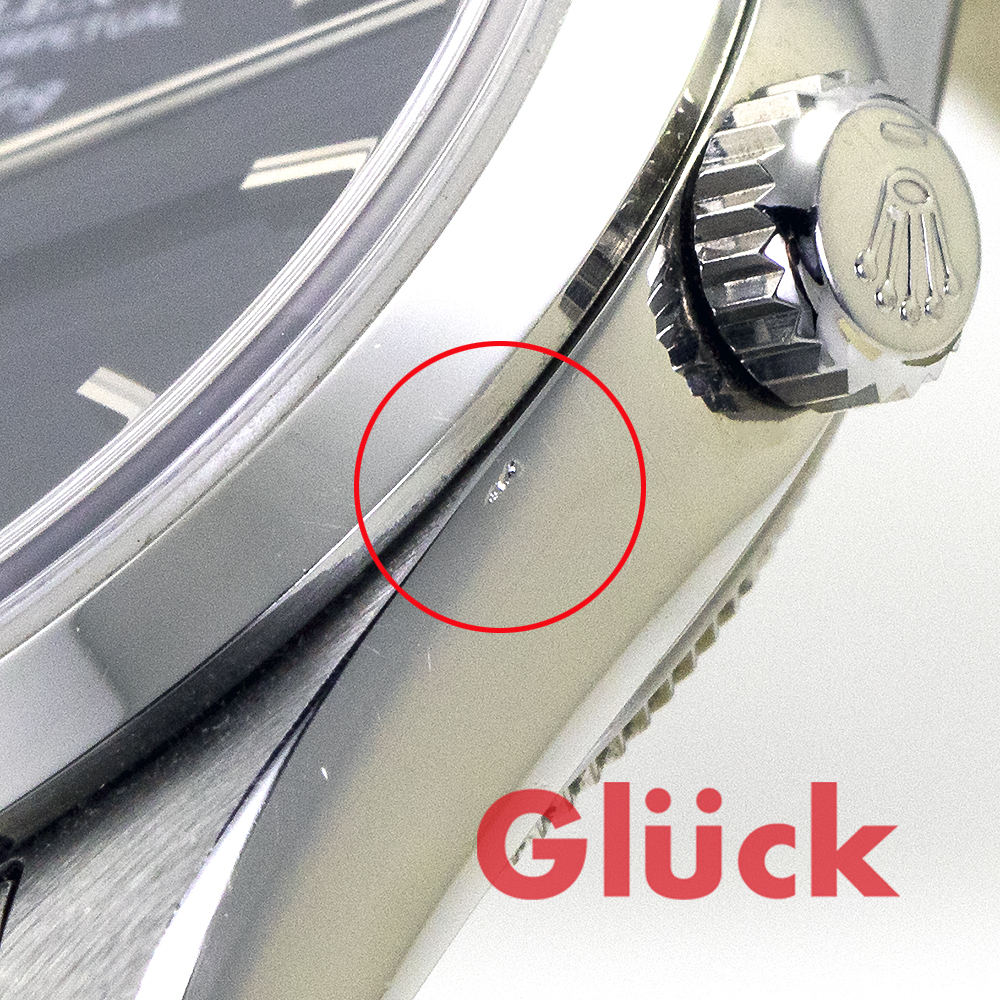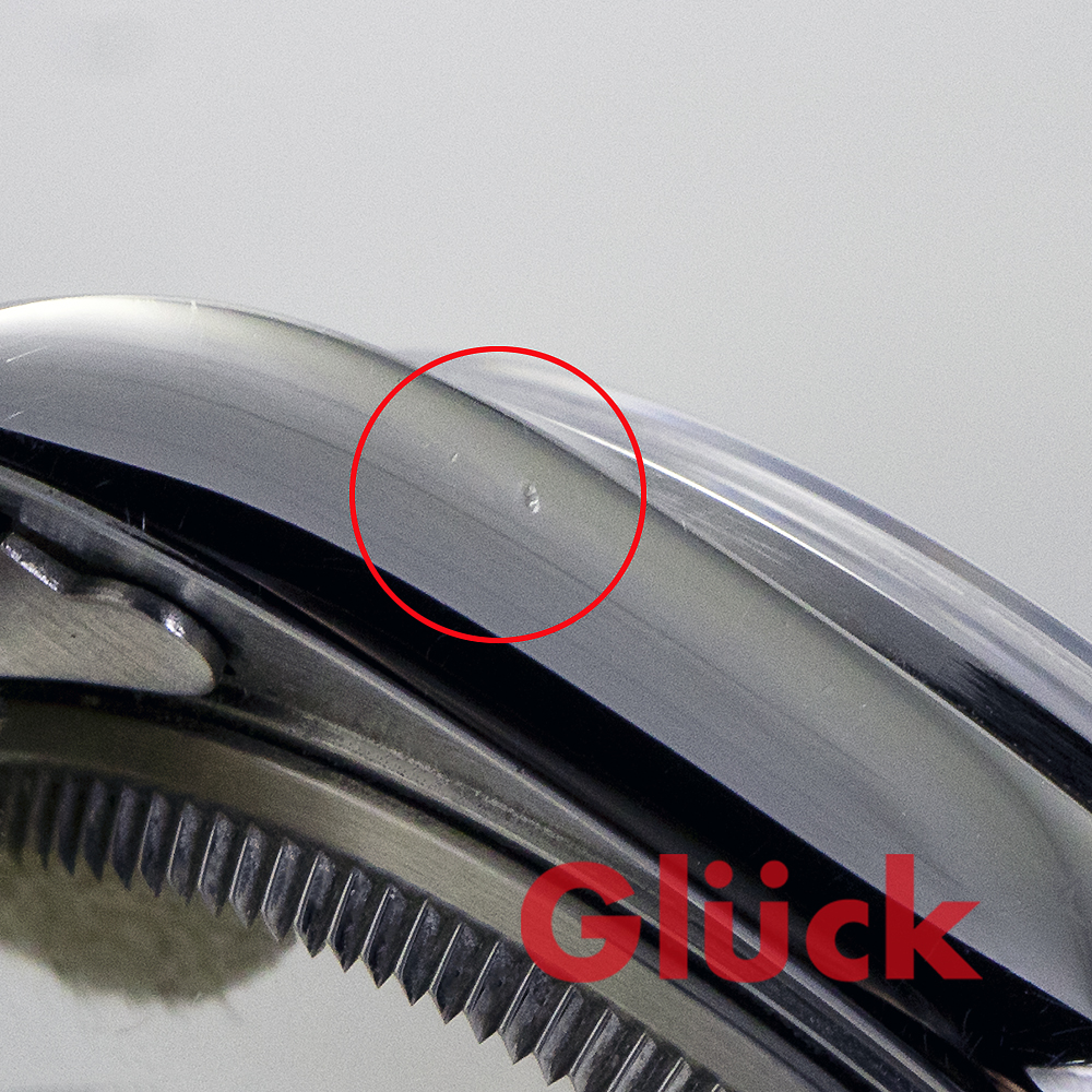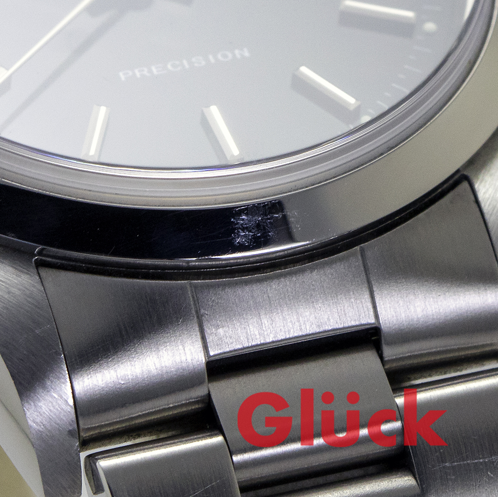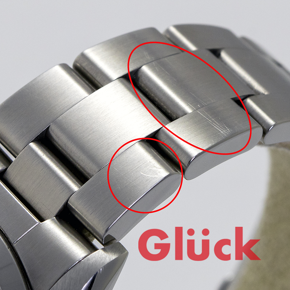ブレスレットやベゼルに擦りキズ、ケースサイドに打痕があります。