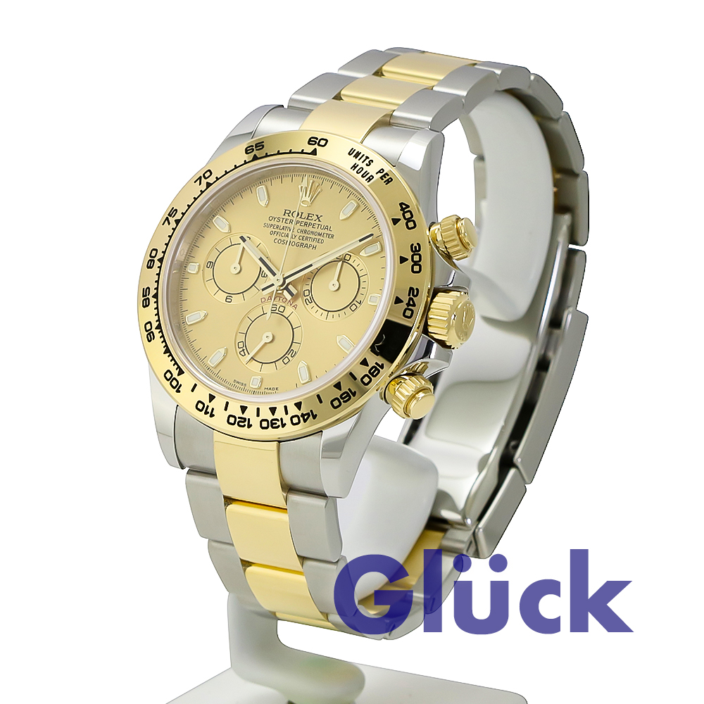 シャンパンカラーダイアルとオイスターブレスレットを備えた、イエローゴールドタキメーターベゼルが特徴的な、オイスタースチール&イエローゴールドのオイスター パーペチュアル コスモグラフ デイトナ 116503、入荷いたしました。