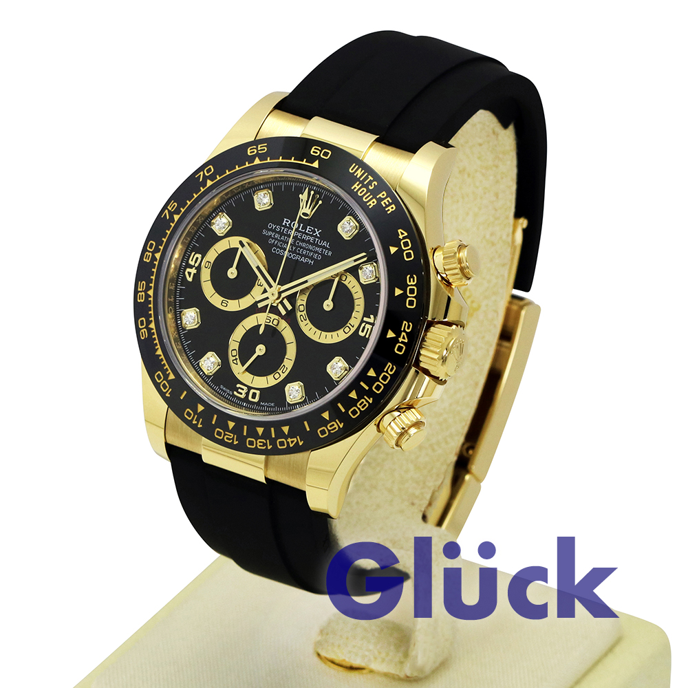 ダイヤモンド入りのブラックダイアルとオイスターフレックスブレスレットを備え、ブラックセラクロムタキメーターベゼルが特徴的な、18ct イエローゴールドのオイスター パーペチュアル コスモグラフ デイトナ 116518LNG、入荷いたしました。