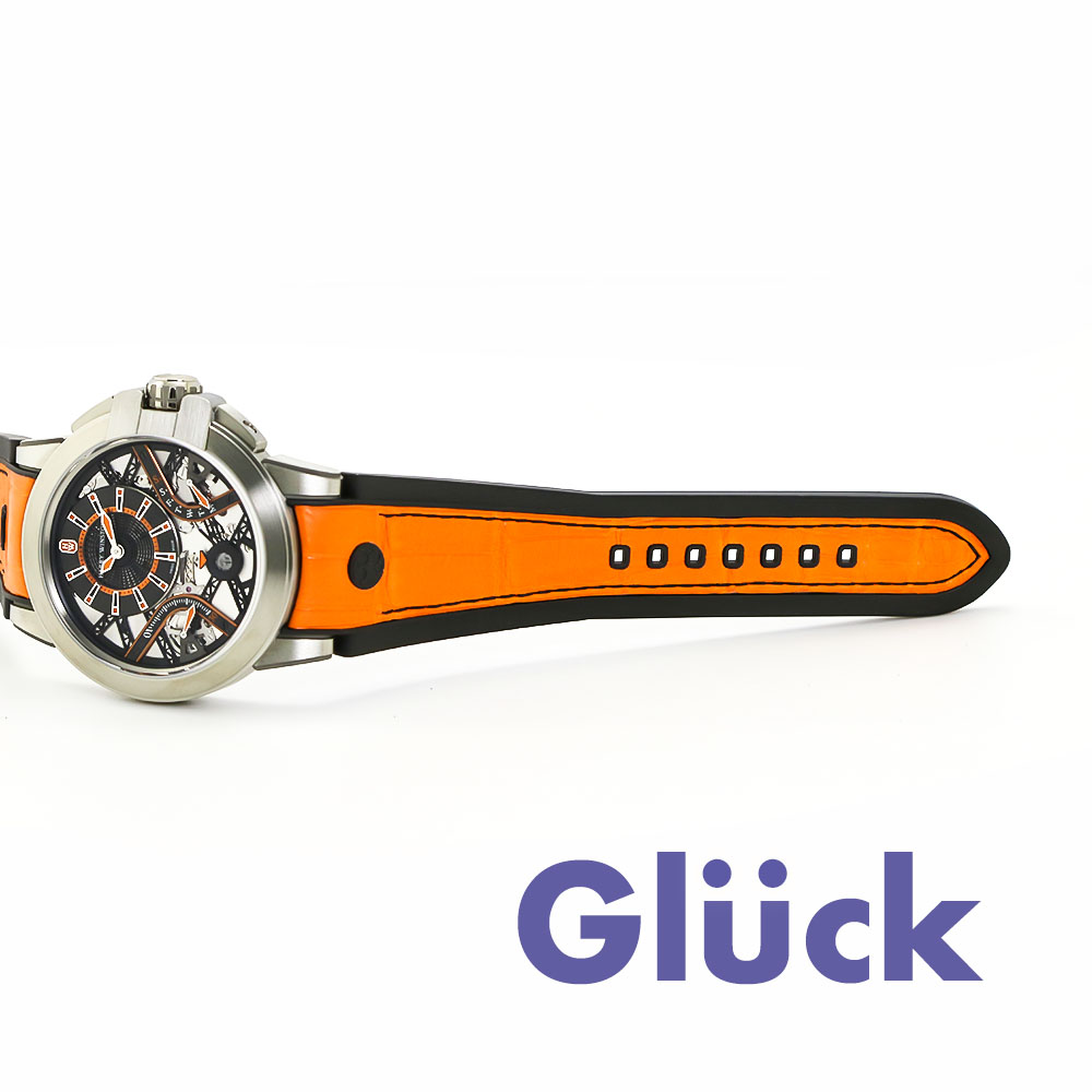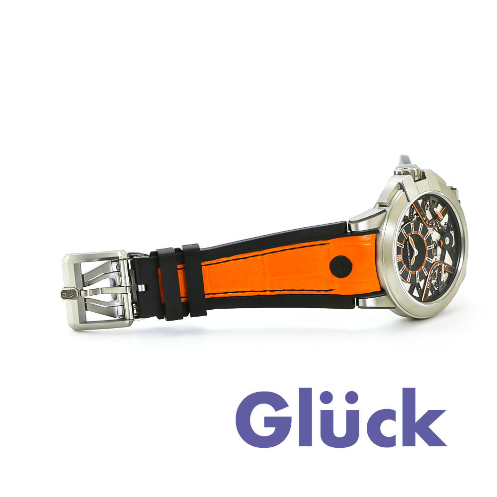 ザリウムケースのグレーカラーとダイヤル上の鮮やかなオレンジカラーの大胆なコントラスト、レトログラード機構が織りなすスペクタクル、そしてそのマッシブな佇まいが、アクティブなライフスタイルを彩ります。