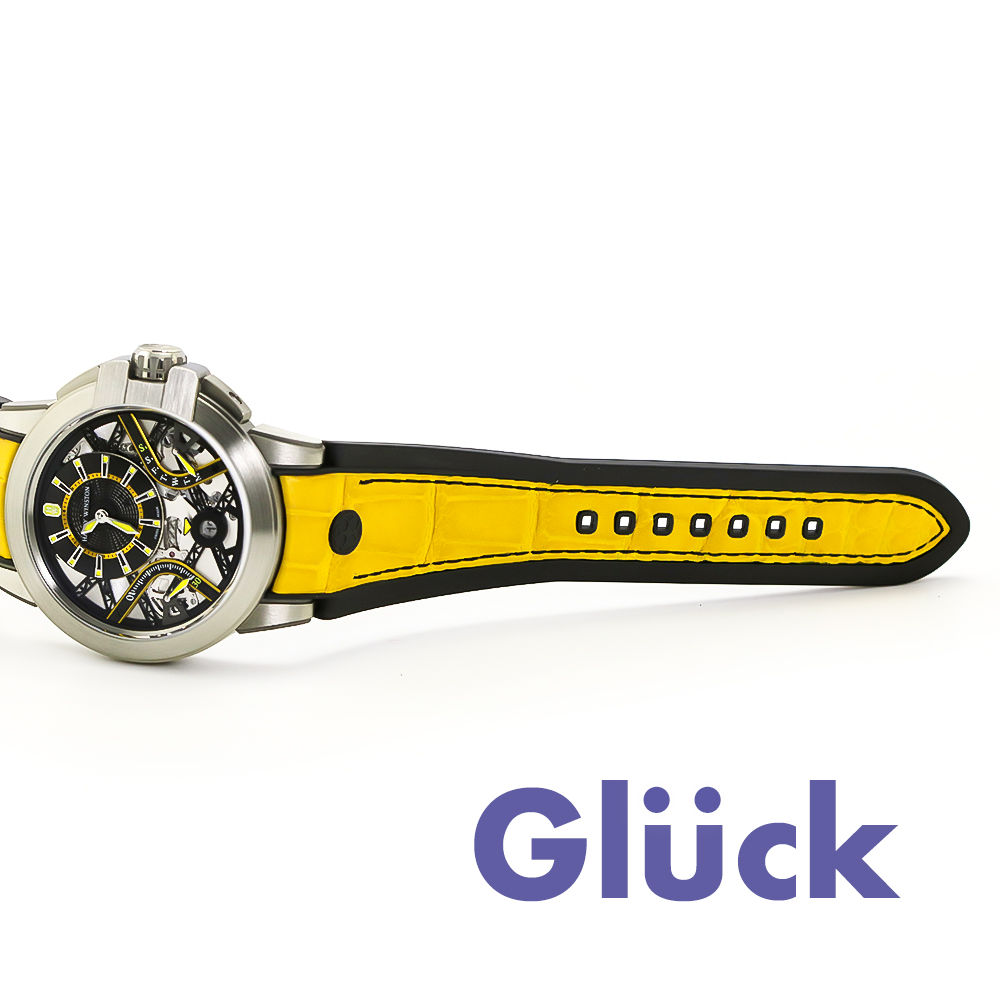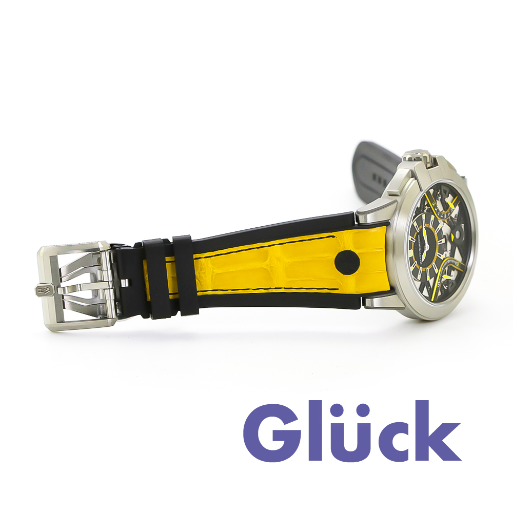 特殊合金ザリウムをケース素材に採用したこの「ザリウム バリエーション・イエロー」は、マンハッタン・ブリッジにインスピレーションを得た大胆なデザインを、オープンワーク・ダイヤルにより表現しています。