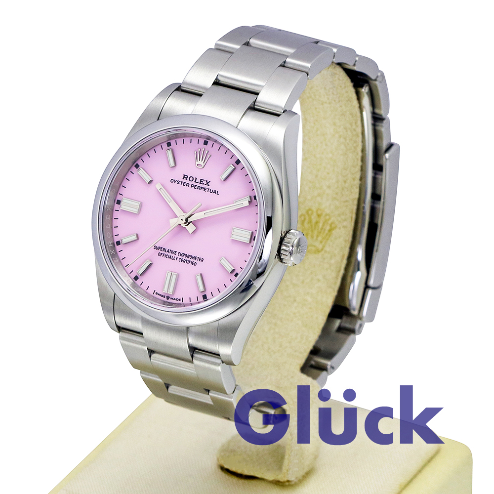 キャンディピンクダイアルとオイスターブレスレットを備えた、オイスター パーペチュアル 36 126000、入荷いたしました。