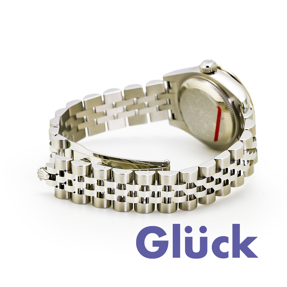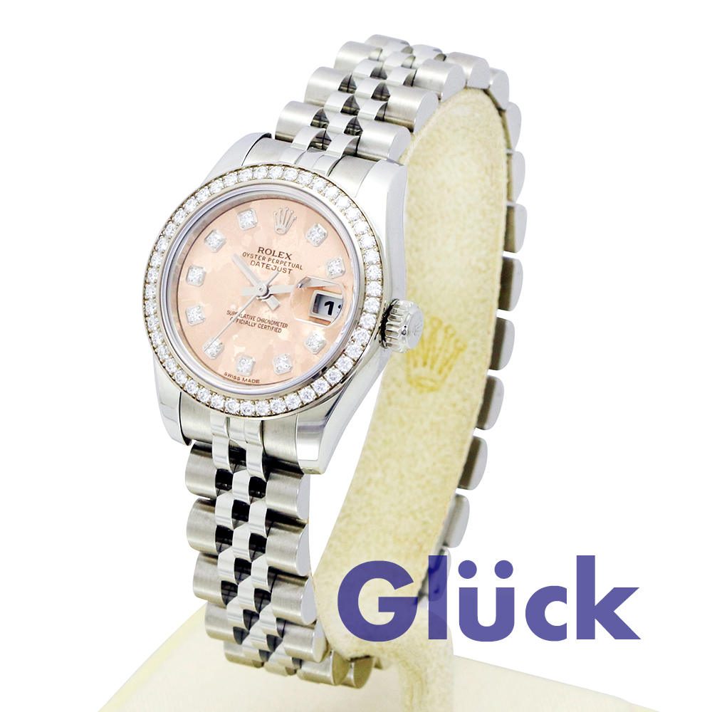 こちらはピンクゴールドクリスタル文字盤に10ポイントのダイヤモンドインデックス、ベゼルにダイヤモンドがセッティングされた、ジュビリーブレスレットモデルです。