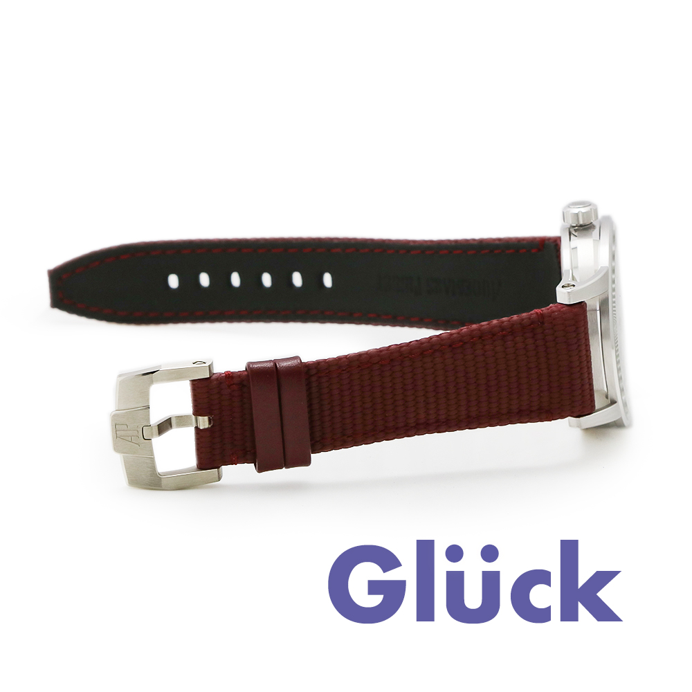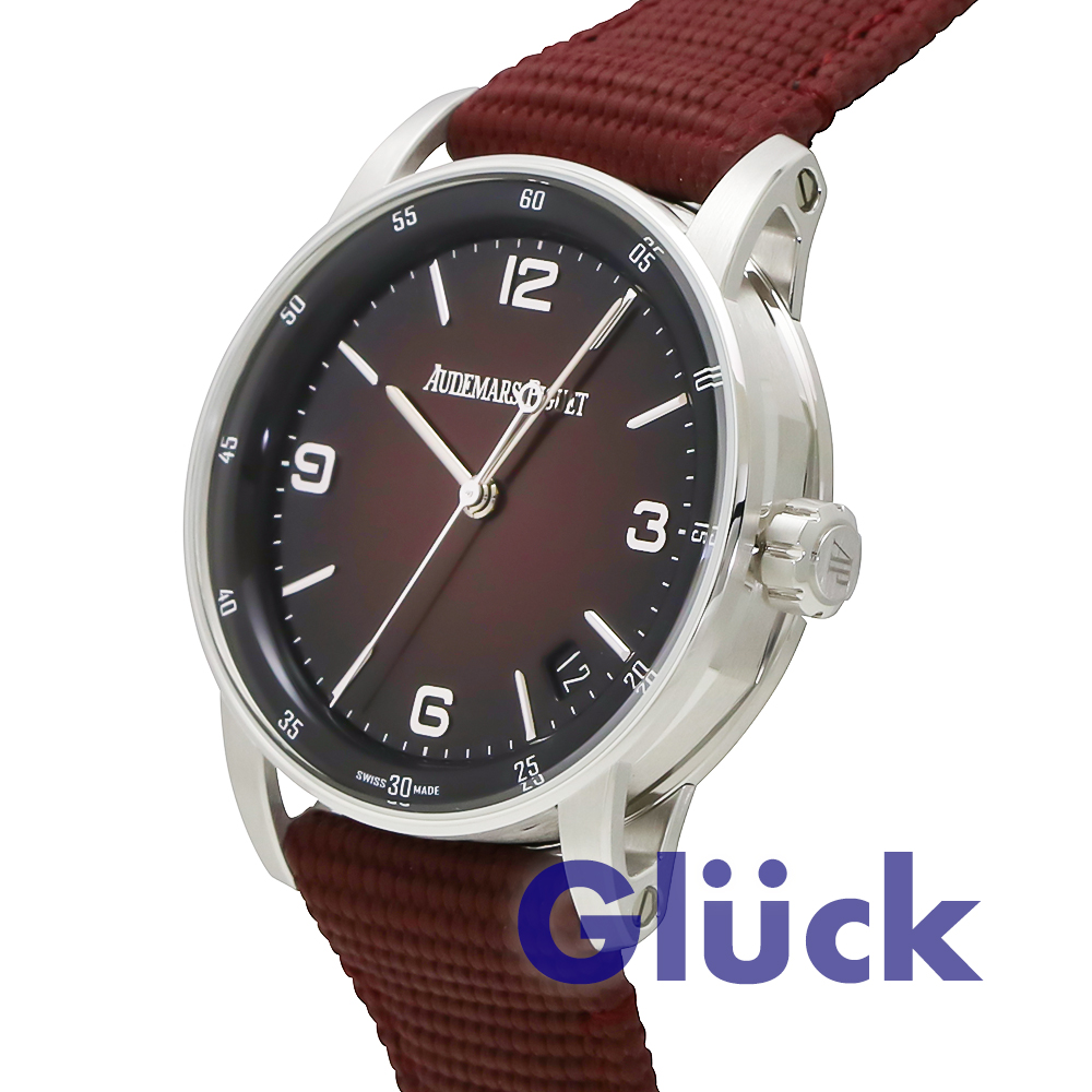 18Kホワイトゴールドケースに、サンバースト模様のスモークバーガンディラッカーダイヤル、ダイヤルの深みのあるカラーにマッチしたバーガンディーラバーストラップモデルです。