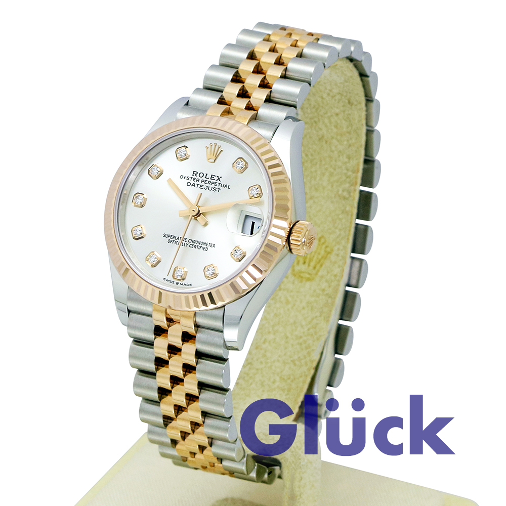 シルバー、ダイヤモンド入りダイアルとジュビリー(Jubilee)ブレスレットを備えた、オイスタースチール&エバーローズゴールドのオイスター パーペチュアル デイトジャスト 31 278271G、入荷いたしました。