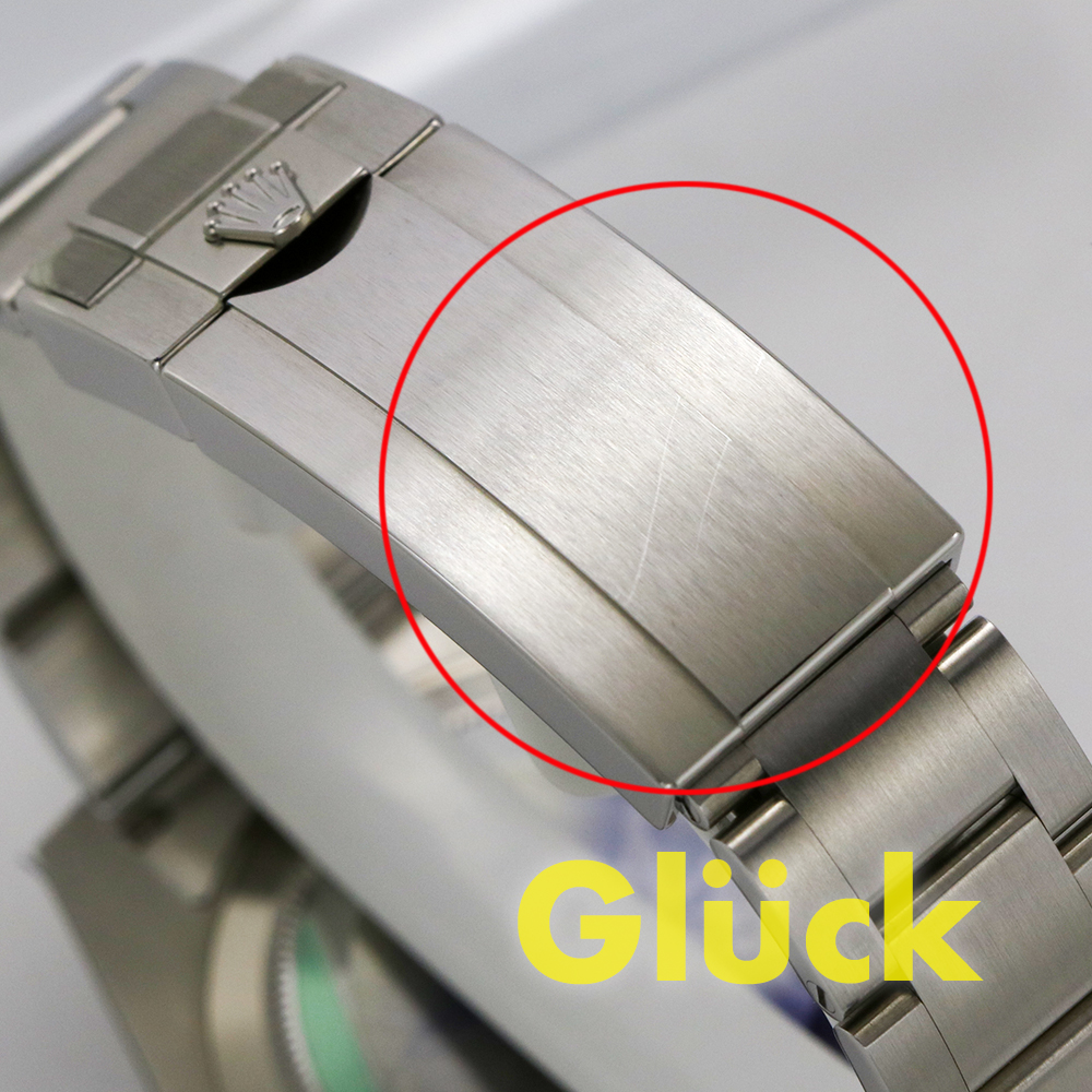 バックル表面にキズ、純正保護シールに変色が見受けられます。