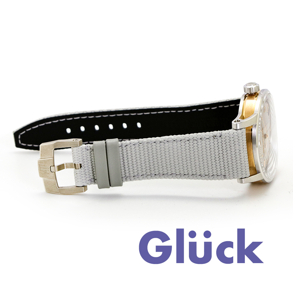18Kホワイトゴールドケースに、サンバースト模様の グレー ラッカーダイヤル、ダイヤルにマッチしたグレーラバーストラップモデルです。