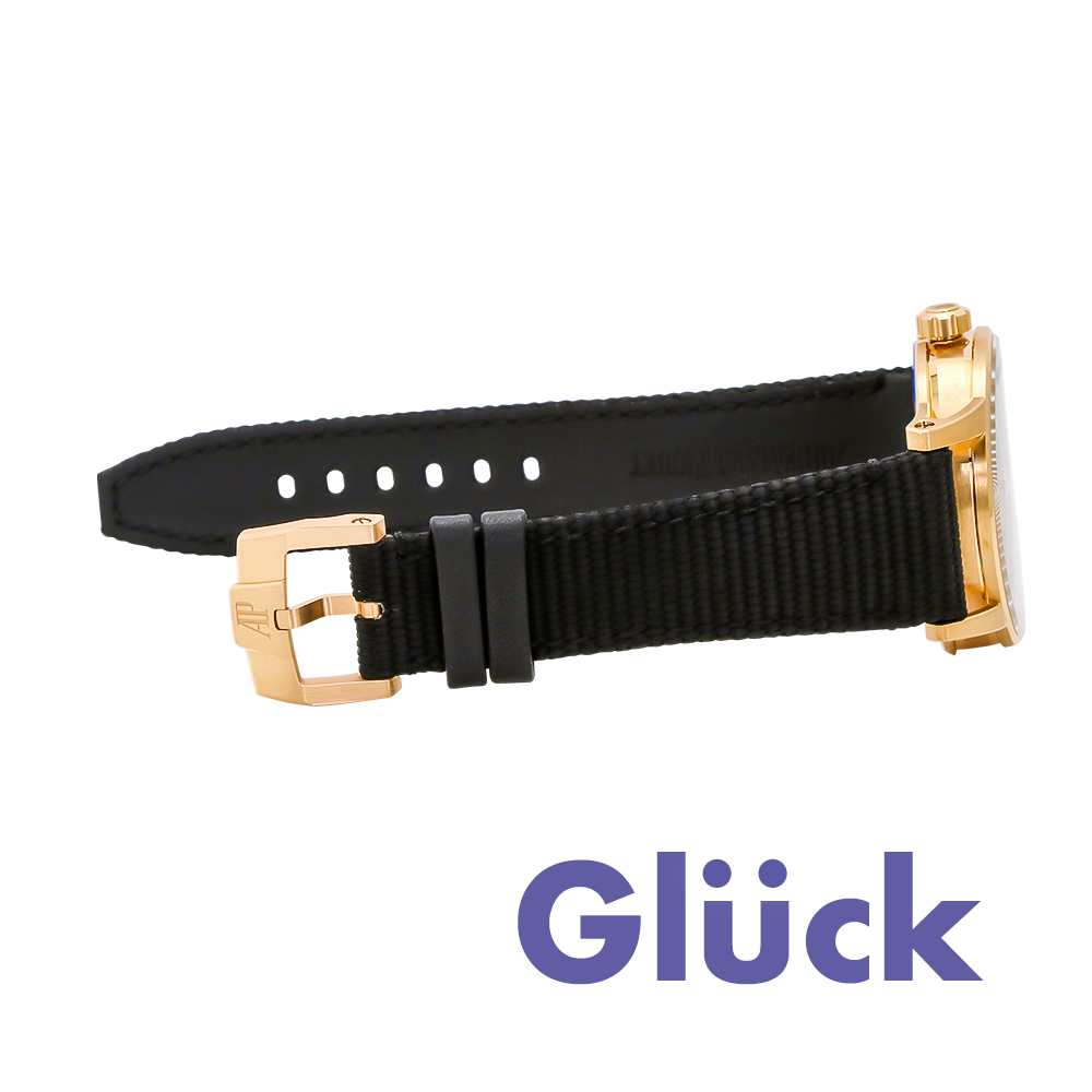 18Kピンクゴールドケースに、サンバースト模様のスモークパープルラッカーダイヤル、ダイヤルの深みのあるカラーにマッチしたブラックラバーストラップモデルです。