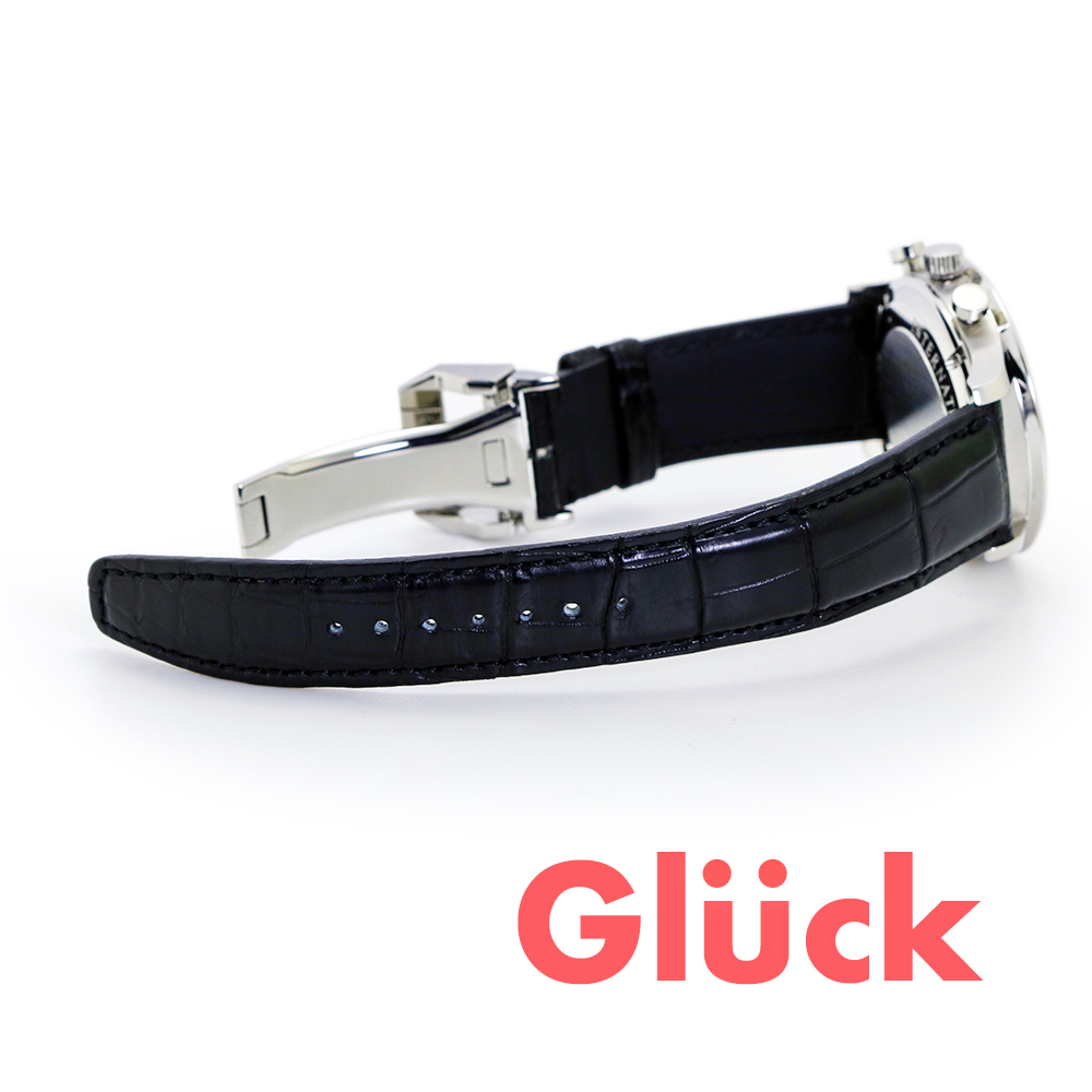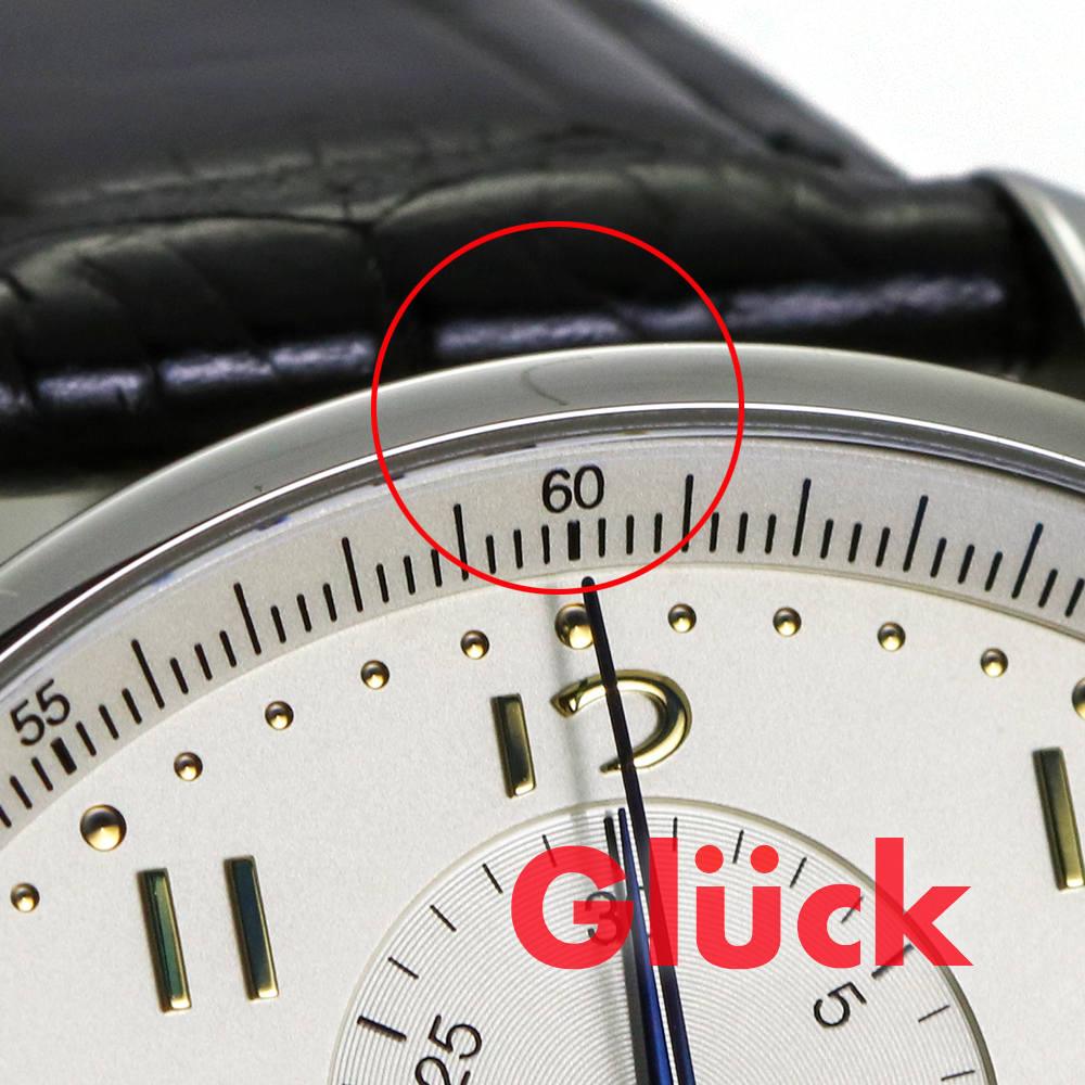 精密な目盛りを周囲に配し、サブダイヤルに段差を付けた文字盤は、調和の取れたデザインを特徴としています。