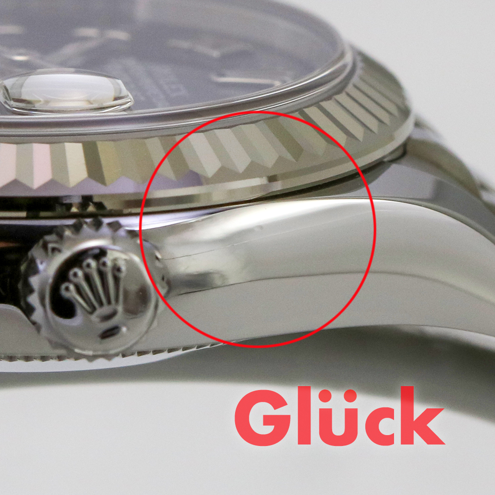 リューズ横のケースサイドに、小さい打痕キズがございますが、あまり目立つことなくご使用いただけます。