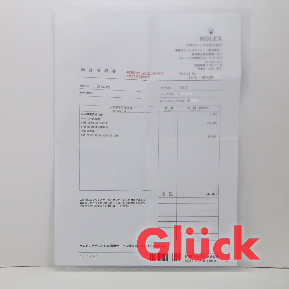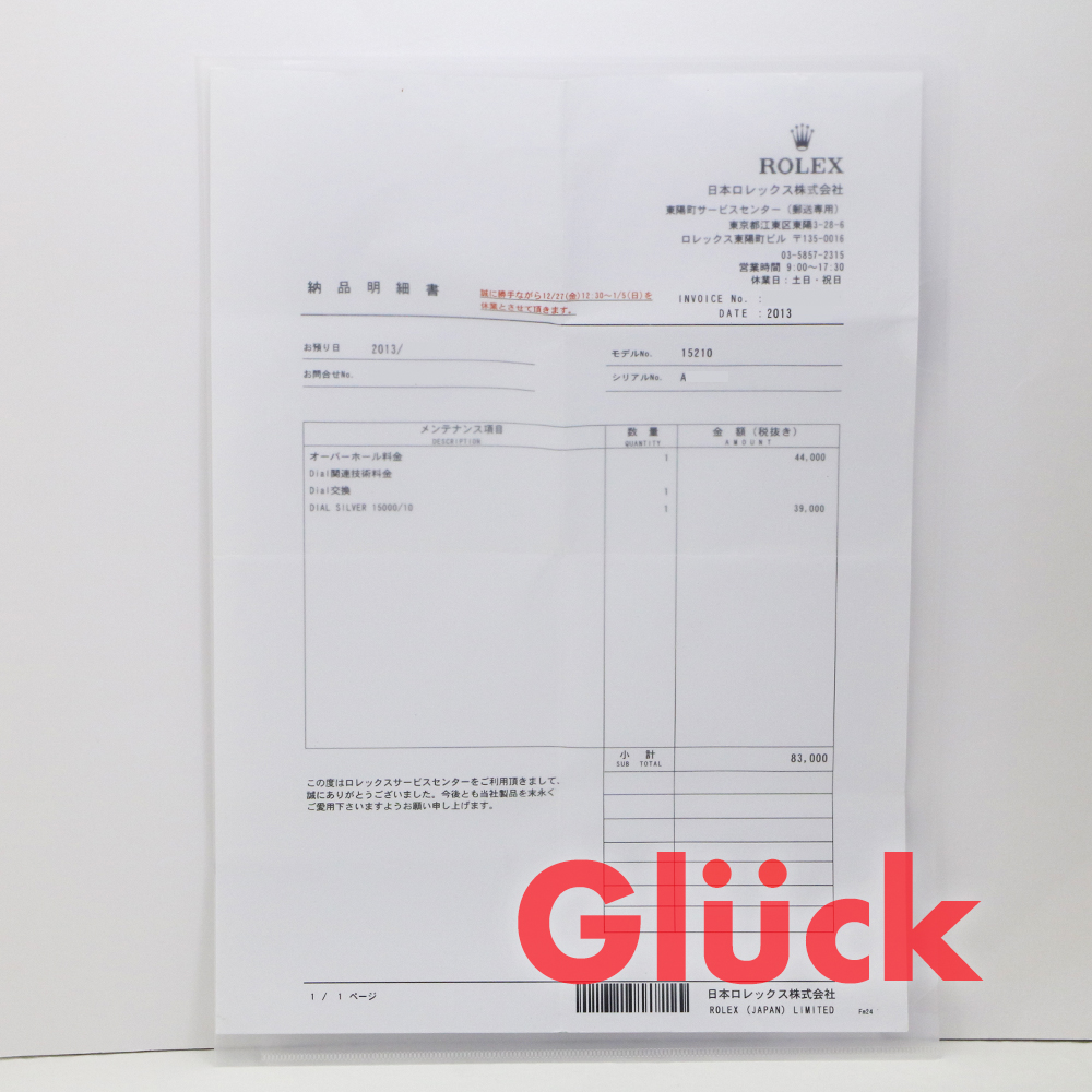 こちらの商品は、2013年11月にメーカーにてオバーホールを行い、2013年12月にケース交換を行っております。