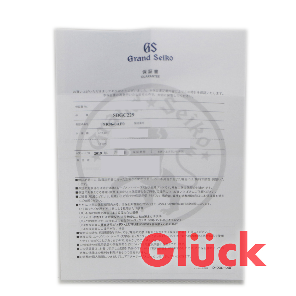 国際保証書は2019年に国内販売店記載です。