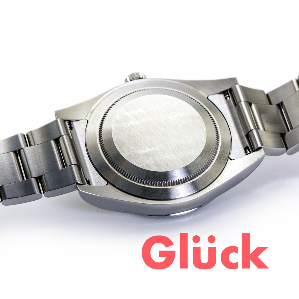 針やインデックスの夜光塗料はクロマライトが使用されており、ブルーに発光します。